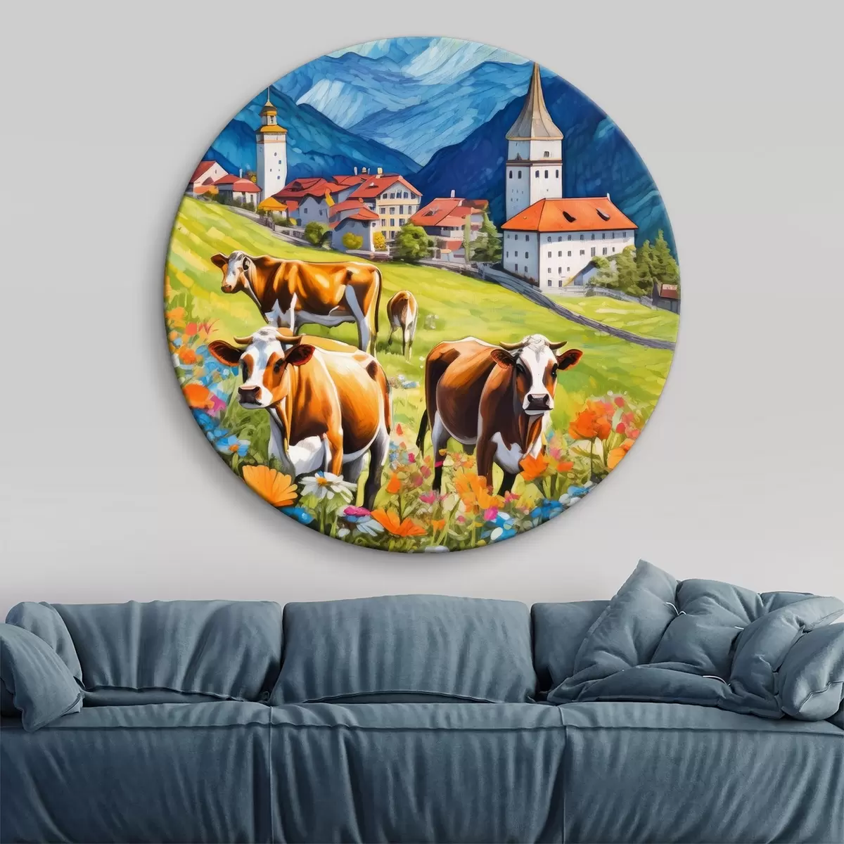 Obrázok Kravy na lúke s kvetmi v alpských horách Nr r38808