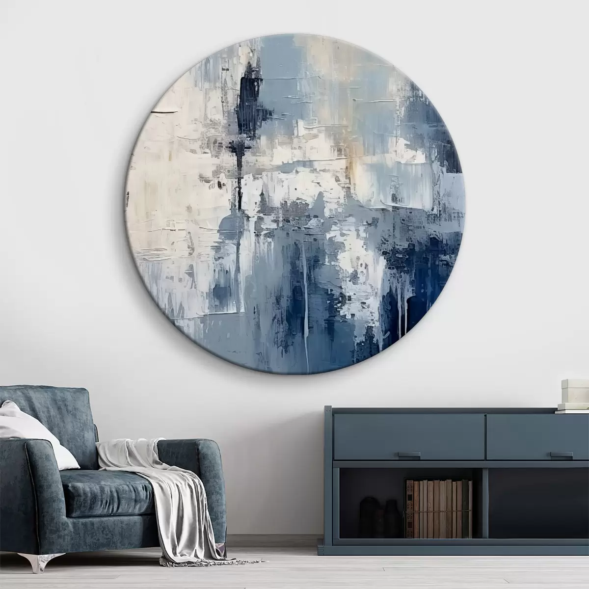 Obrázok Abstraktná minimalistická olejomaľba, trená, geometrická, moridlo, modrá a biela farba Nr r38906