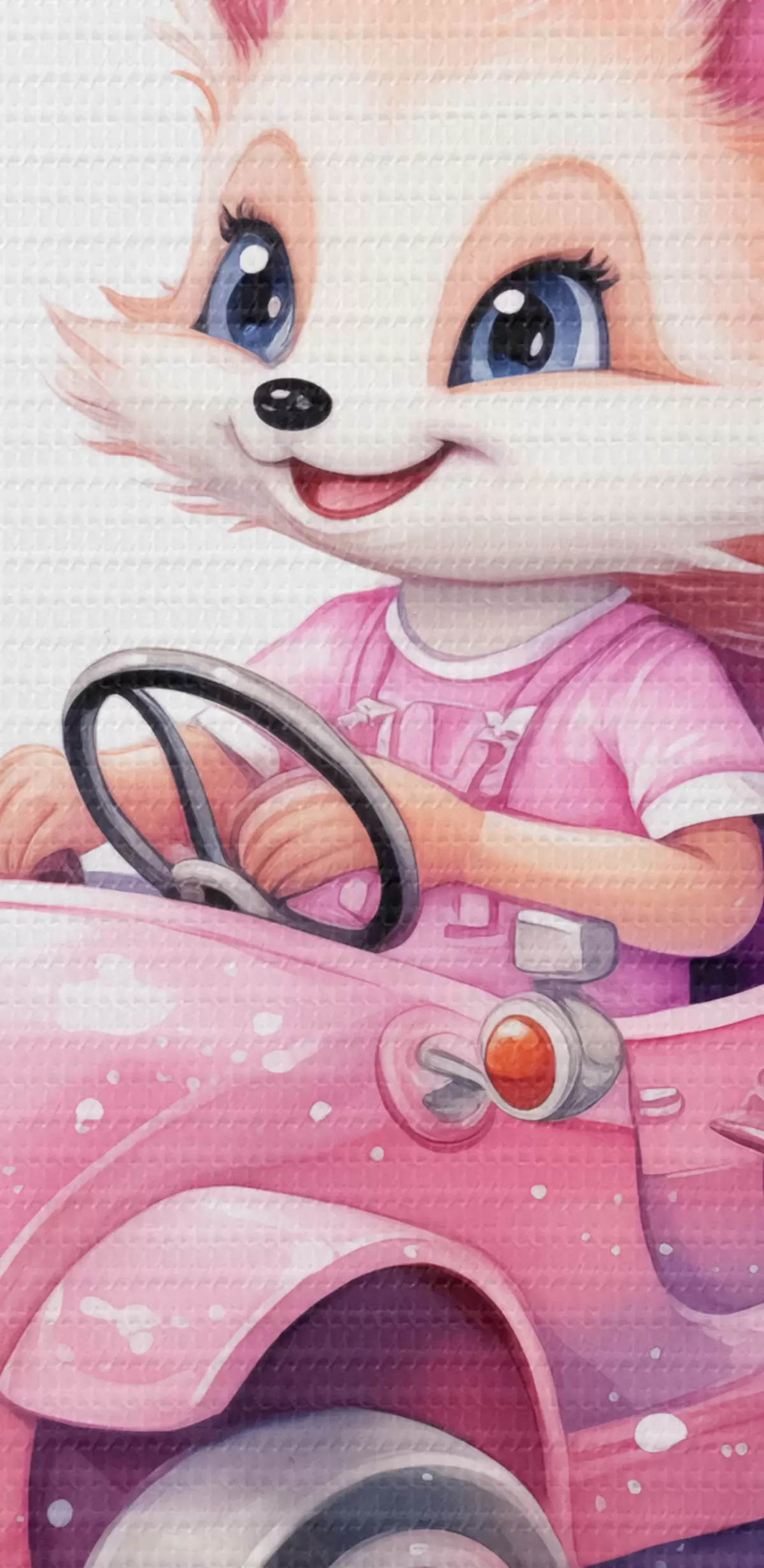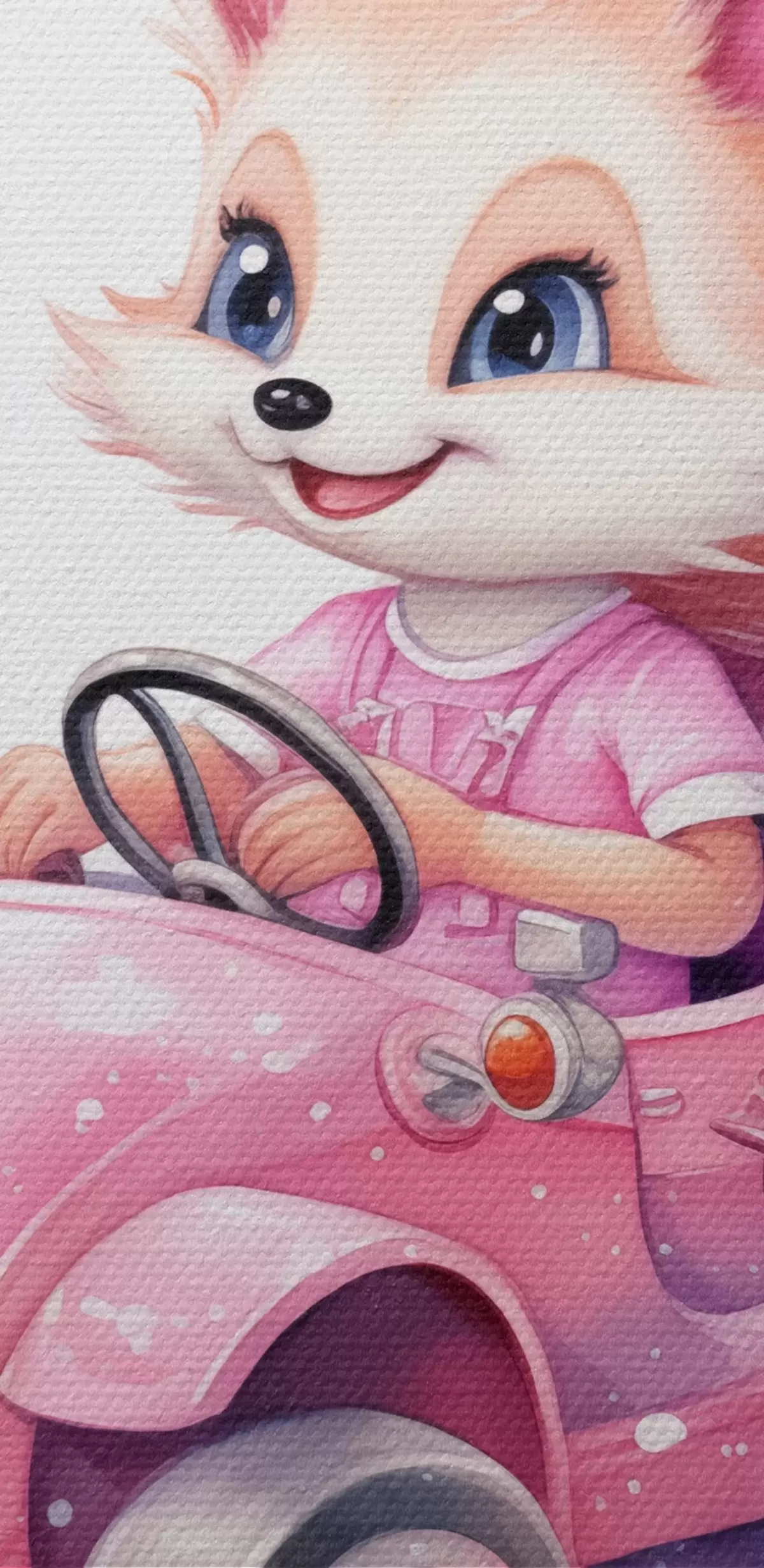 Obrázok Líška jazdí na ružovom aute detská akvarelová ilustrácia Nr r38943