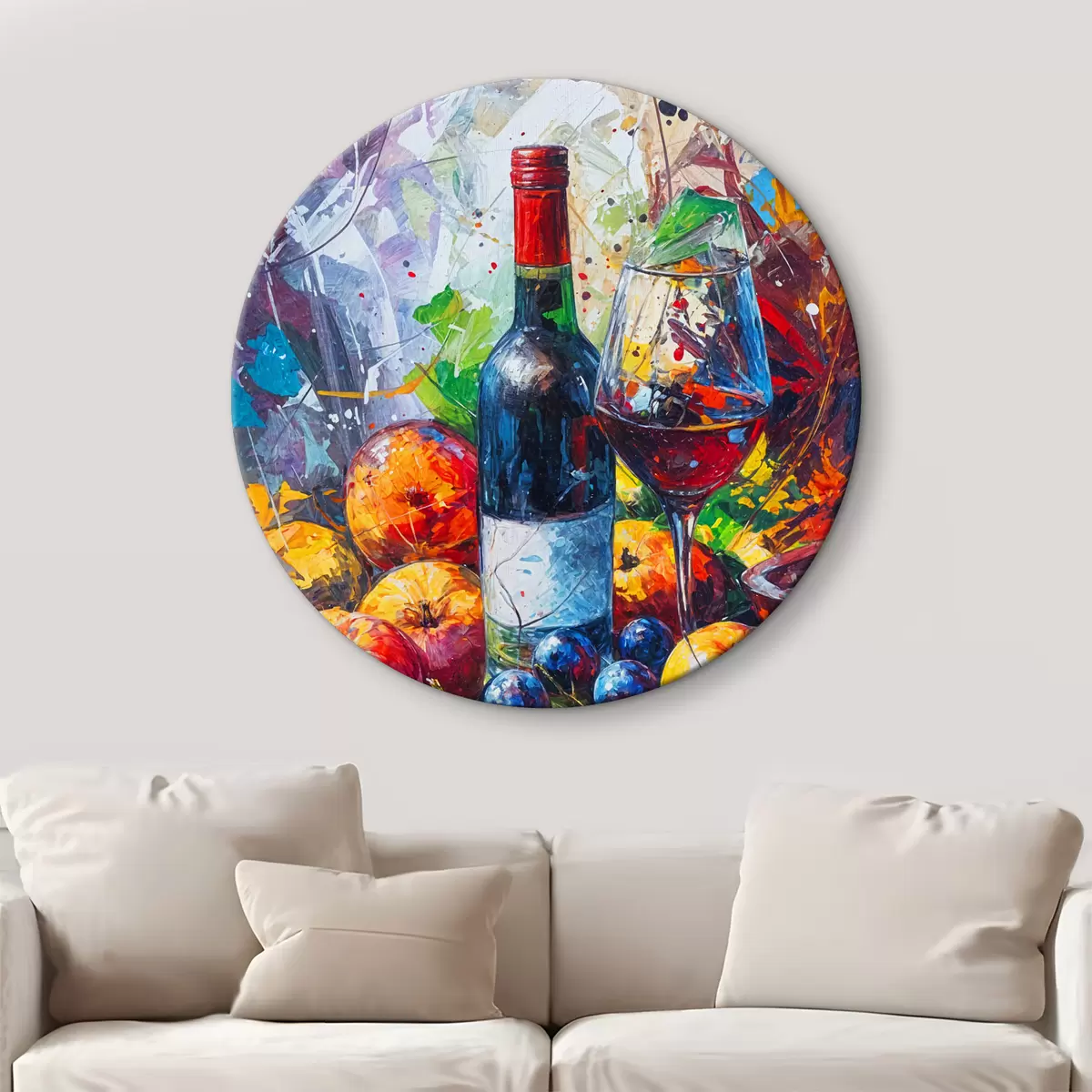 Obrázok Abstraktné zátišie s fľašou vína, pohárom vína a farebným ovocím s rôznymi farbami Nr r38958