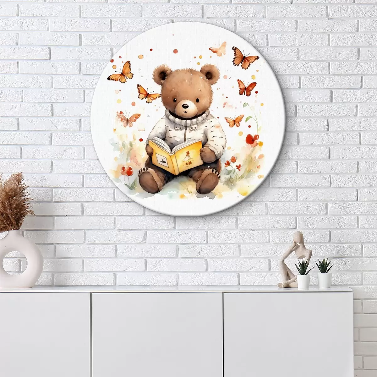 Obrázok Medveď hnedý vo svetri číta knihu obklopenú akvarelovými motýľmi Nr r39025