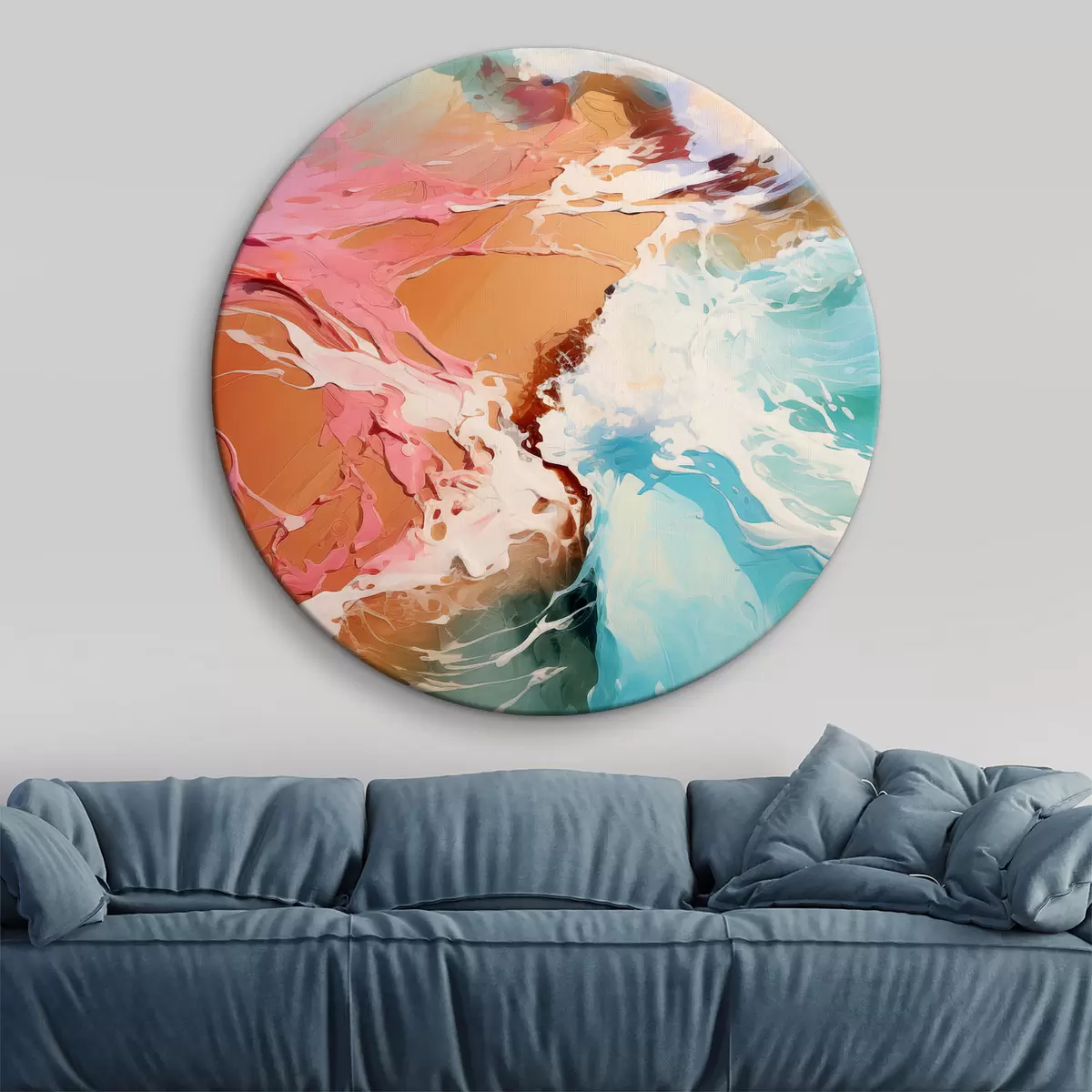 Obrázok Olejová abstraktná maľba morská vlna a piesočnaté pobrežie, modrá, azúrová, ružová, žltá farba Nr r39123