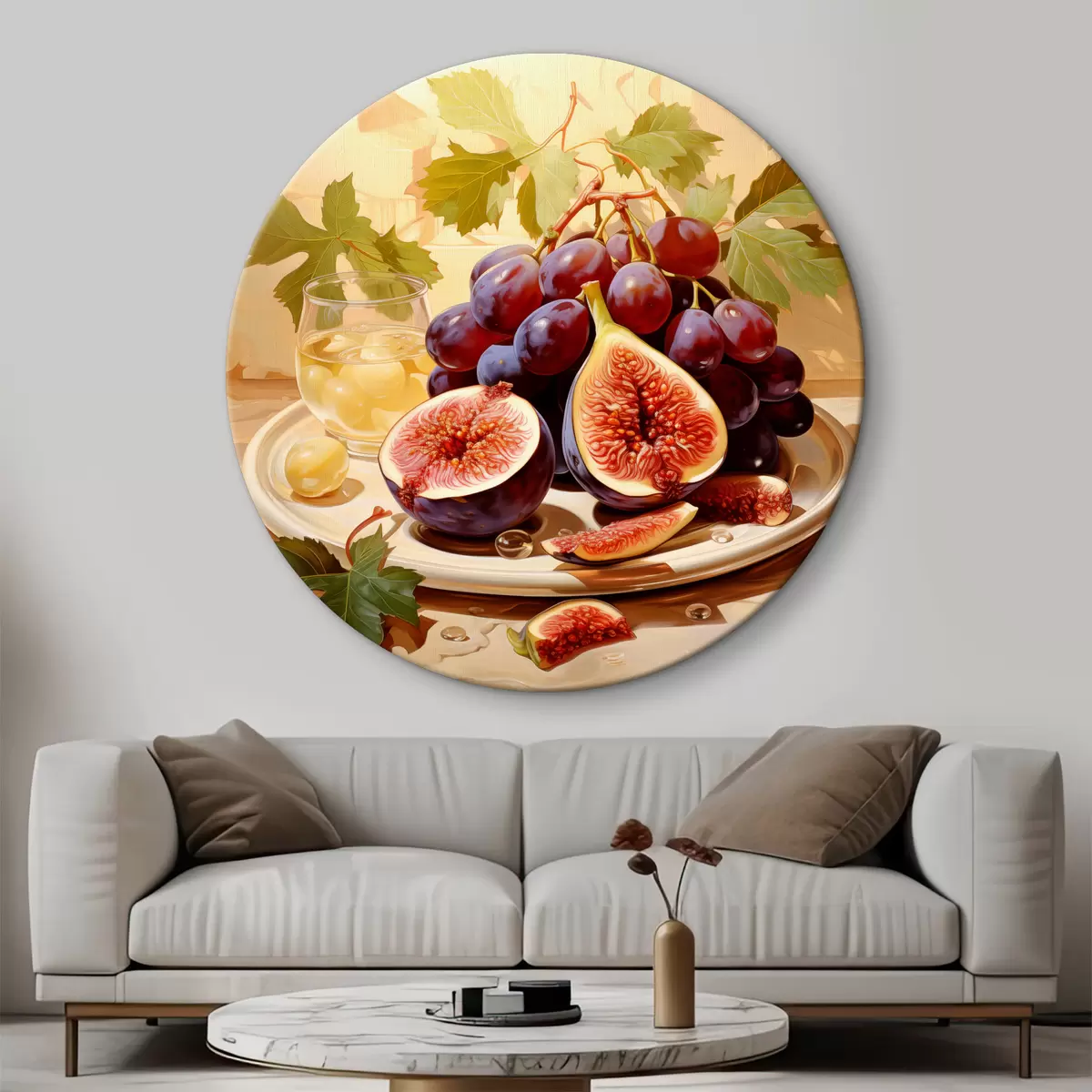 Obrázok Zátišie z modrého hrozna a rezaných fíg na tanieri olejomaľba, béžová a ružová farba Nr r39131