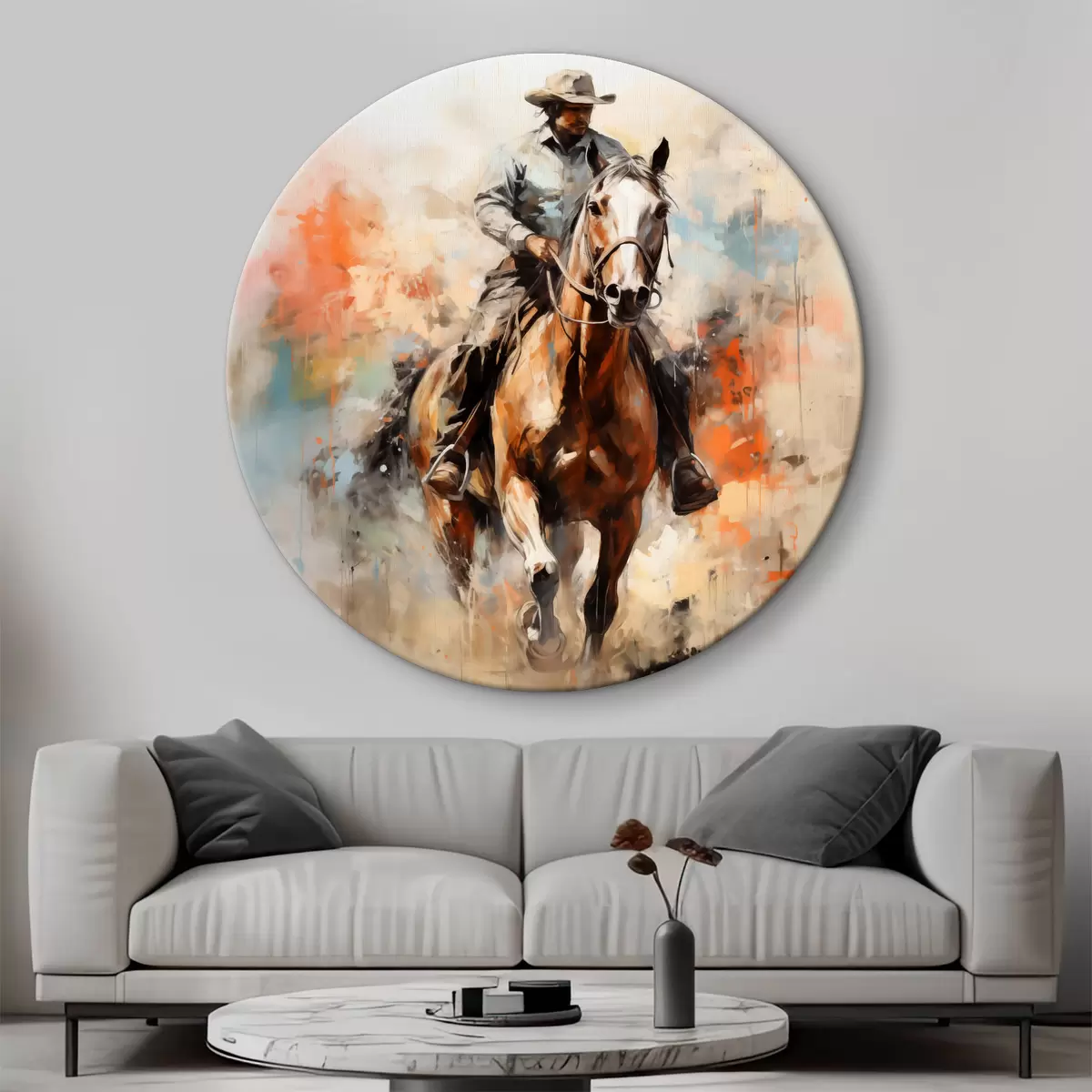 Obrázok Kovboj jazdec v klobúku cvála na hnedom koni olejomaľba abstraktné umenie Nr r39181