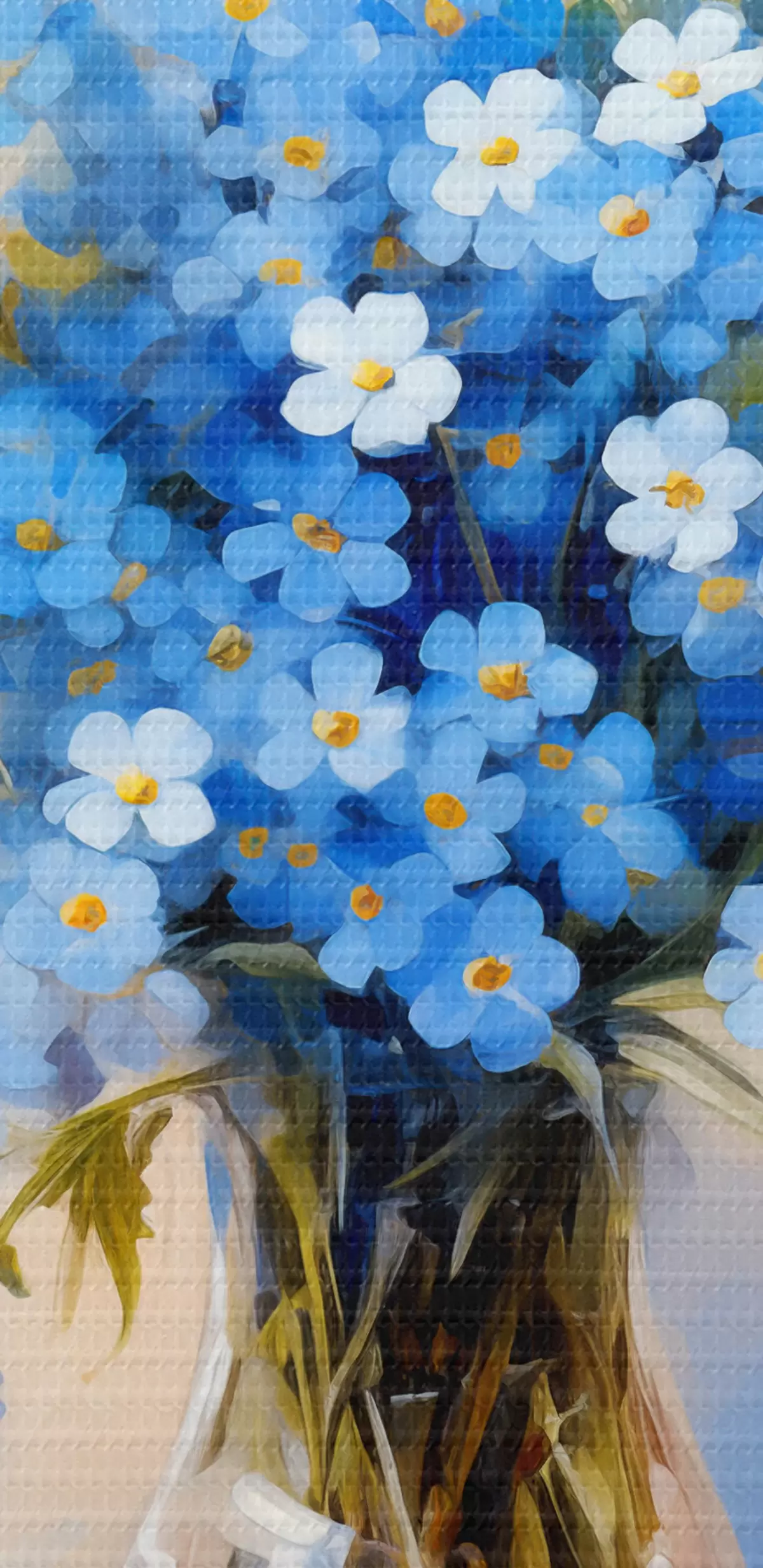 Obrázok Kytica modrých poľných kvetov v sklenenej karafe olejomaľbou Nr r39331