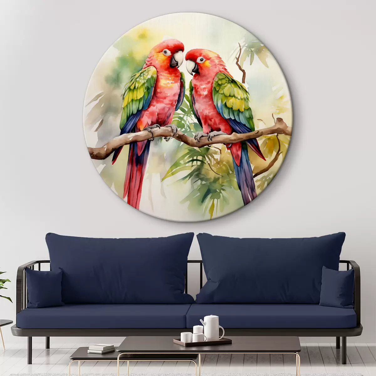 Obrázok Dva svetlé papagáje papagáje sediace na jednej vetve akvarel Nr r39333