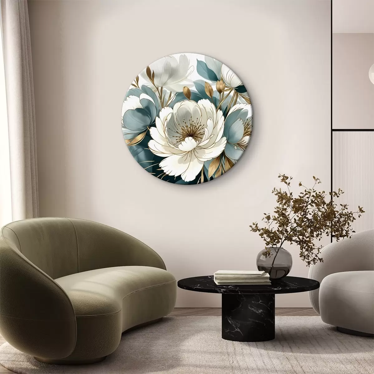 Obrázok Veľké biele a modré kvety s akcentmi, obklopené sviežou zeleňou Nr r39389