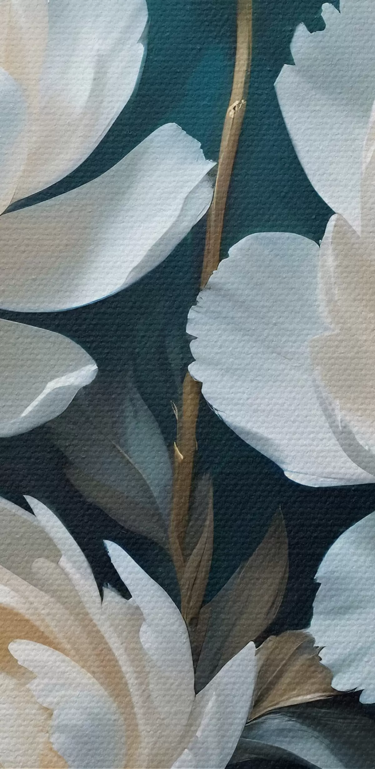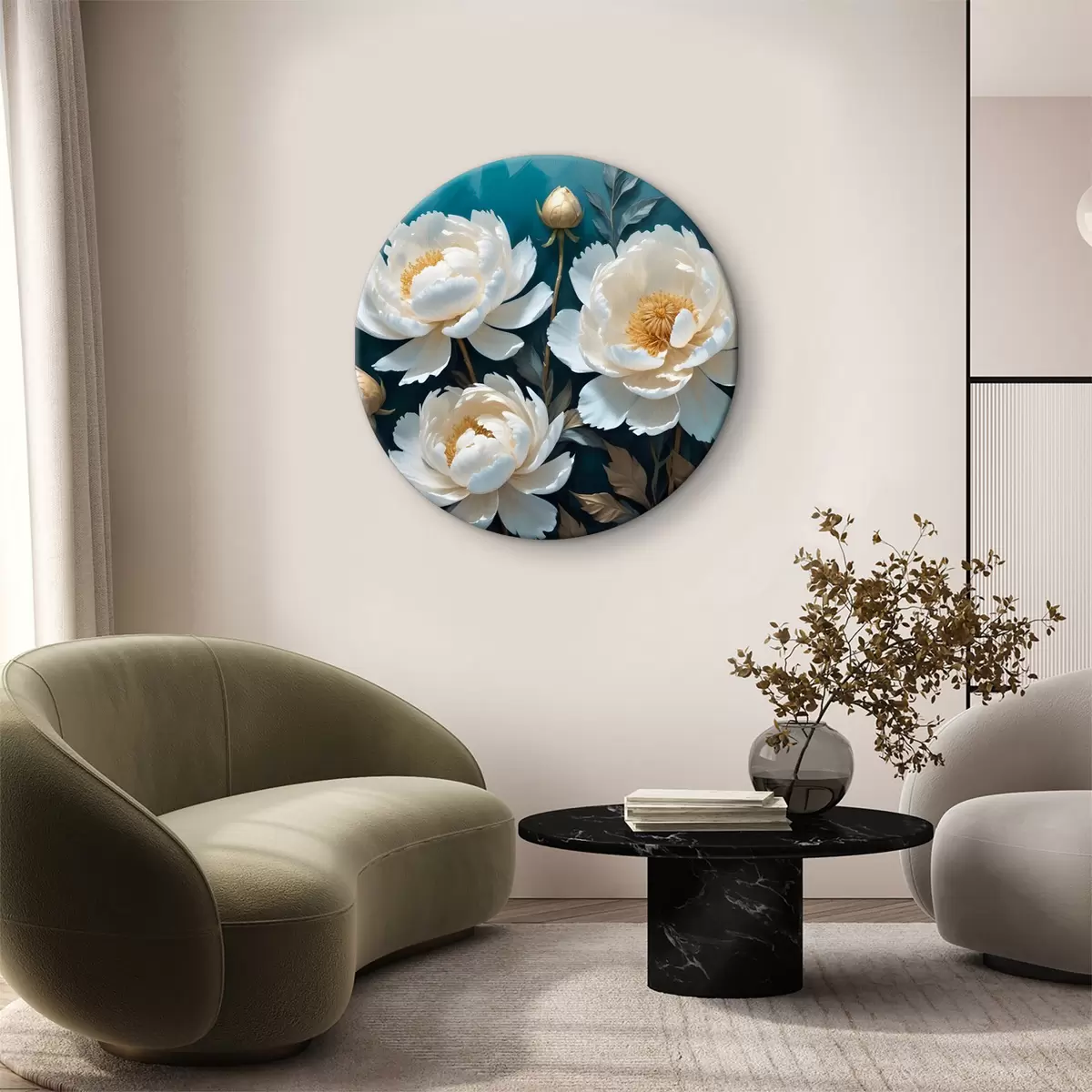 Obrázok Biele kvety pivonky so stredmi na tmavom teal pozadí Nr r39405