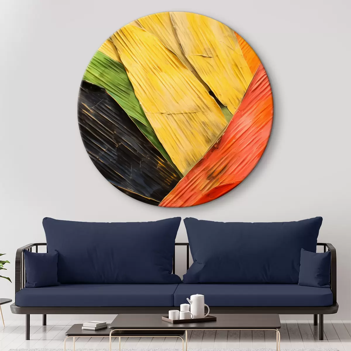 Obrázok Abstraktná olejomaľba s textúrou a drážkami, žltá, zelená, červená, čierna farba Nr r39429
