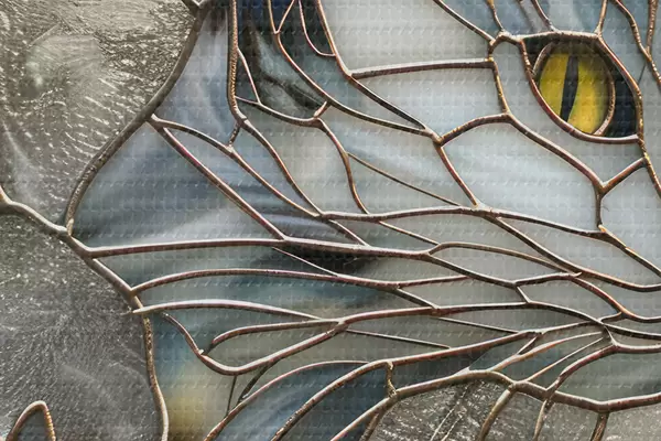 Obrázok Umelecké dielo inšpirované farebným sklom: mačka medzi jesenným lístím Nr r39448