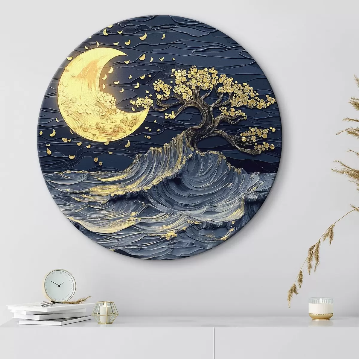 Obrázok Akrylová maľba: romantické morské scenérie s opadaným lístím a odrazmi mesačného svitu Nr r39449