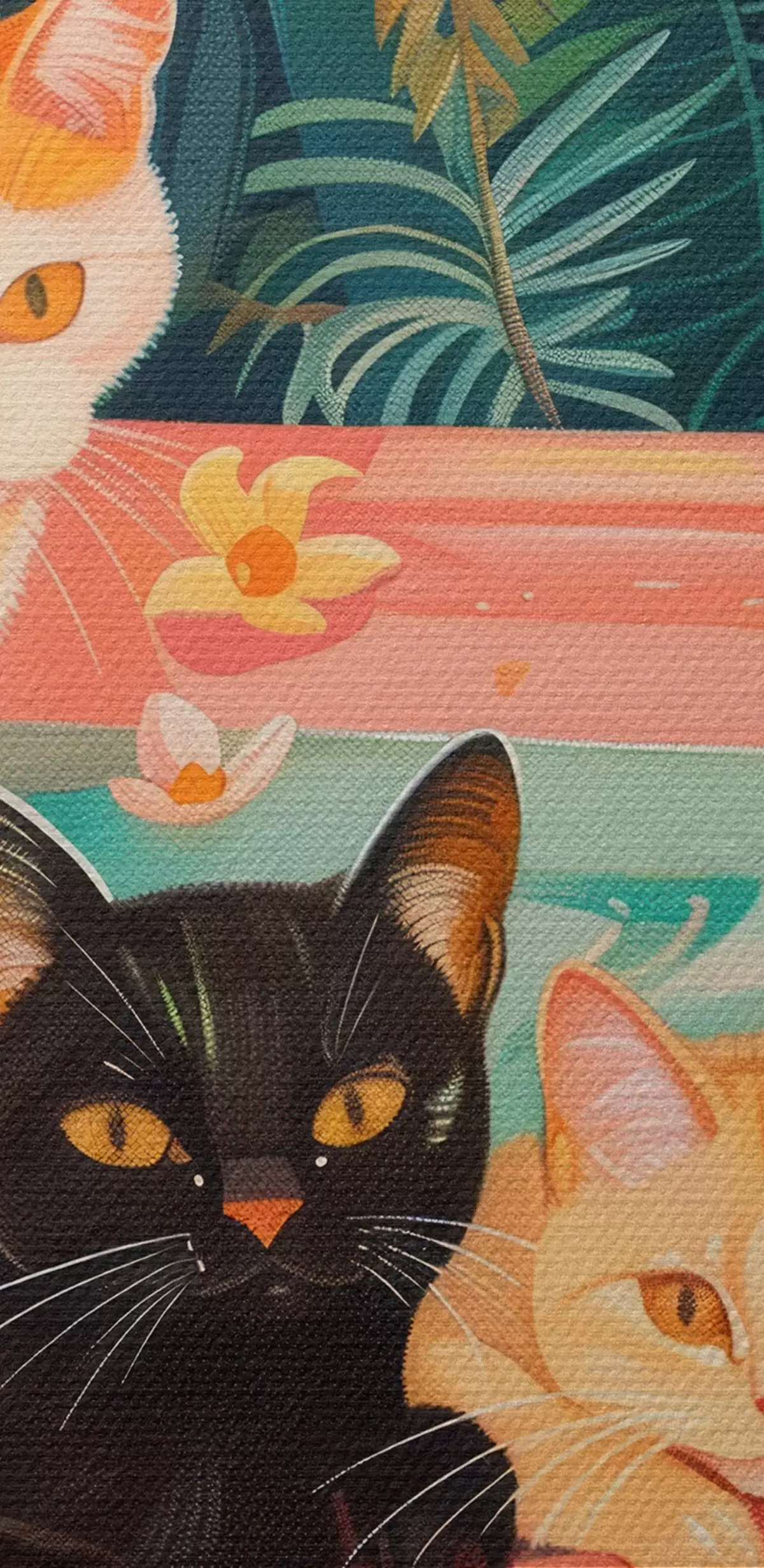Obrázok Mačky v ružovom kúpeli so zelenými listami, atmosféra džungle Nr r39465