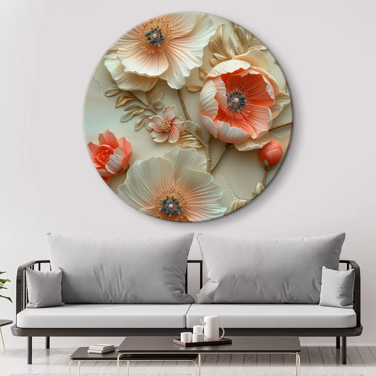 Obrázok Vetva s bielymi a oranžovými makmi a neotvorenými púčikmi s listami v sochárskom štýle Nr r39468
