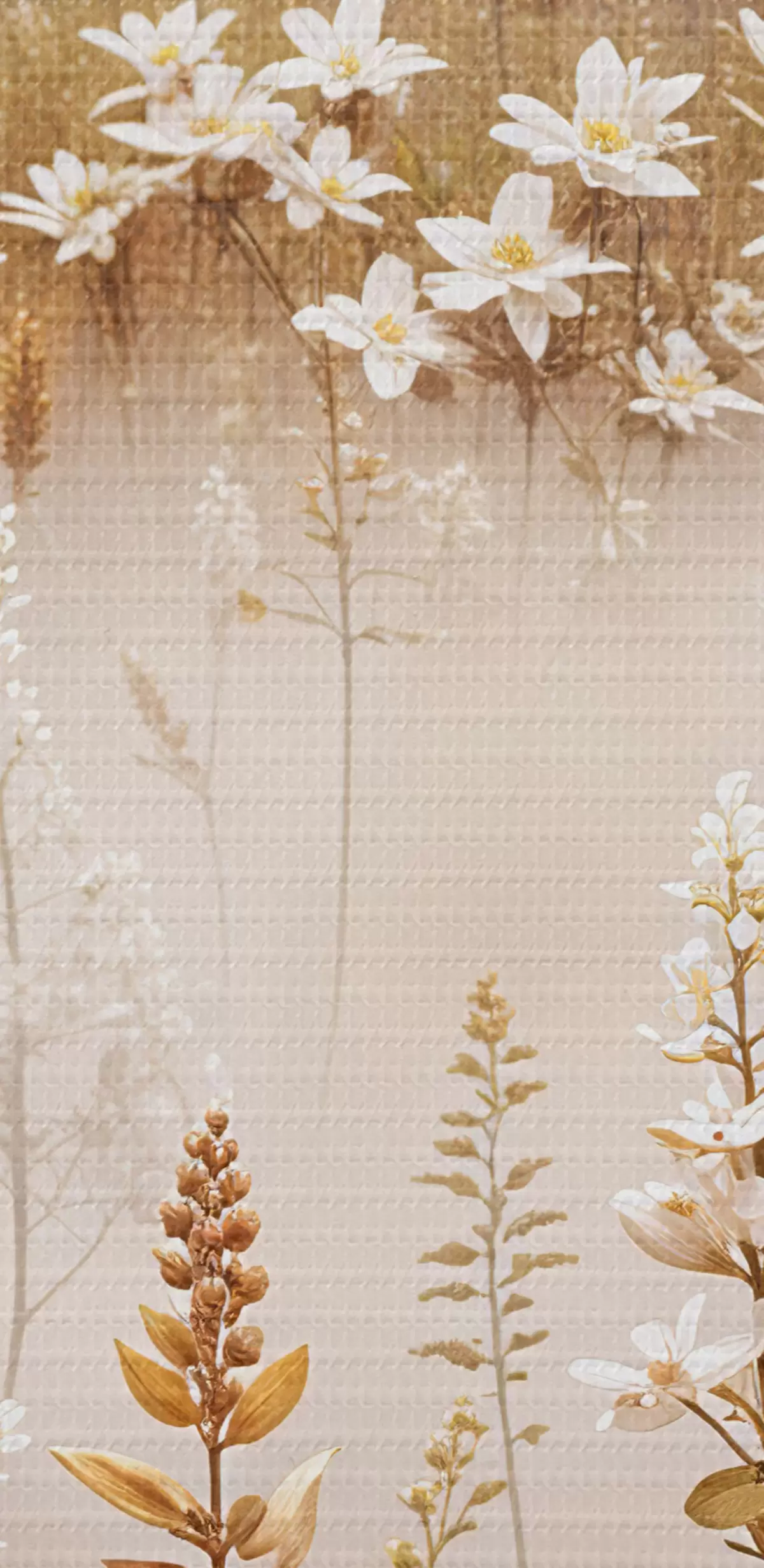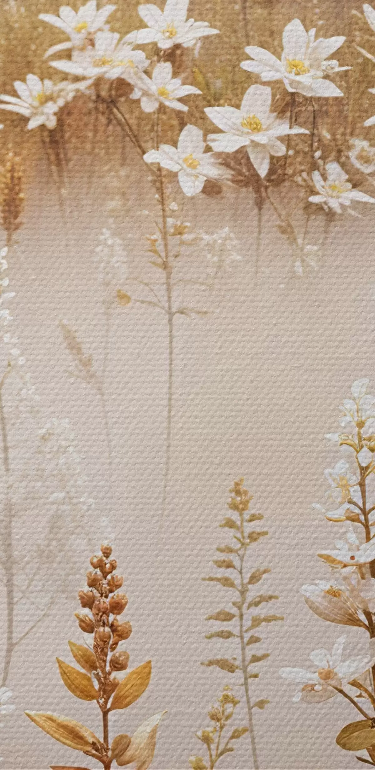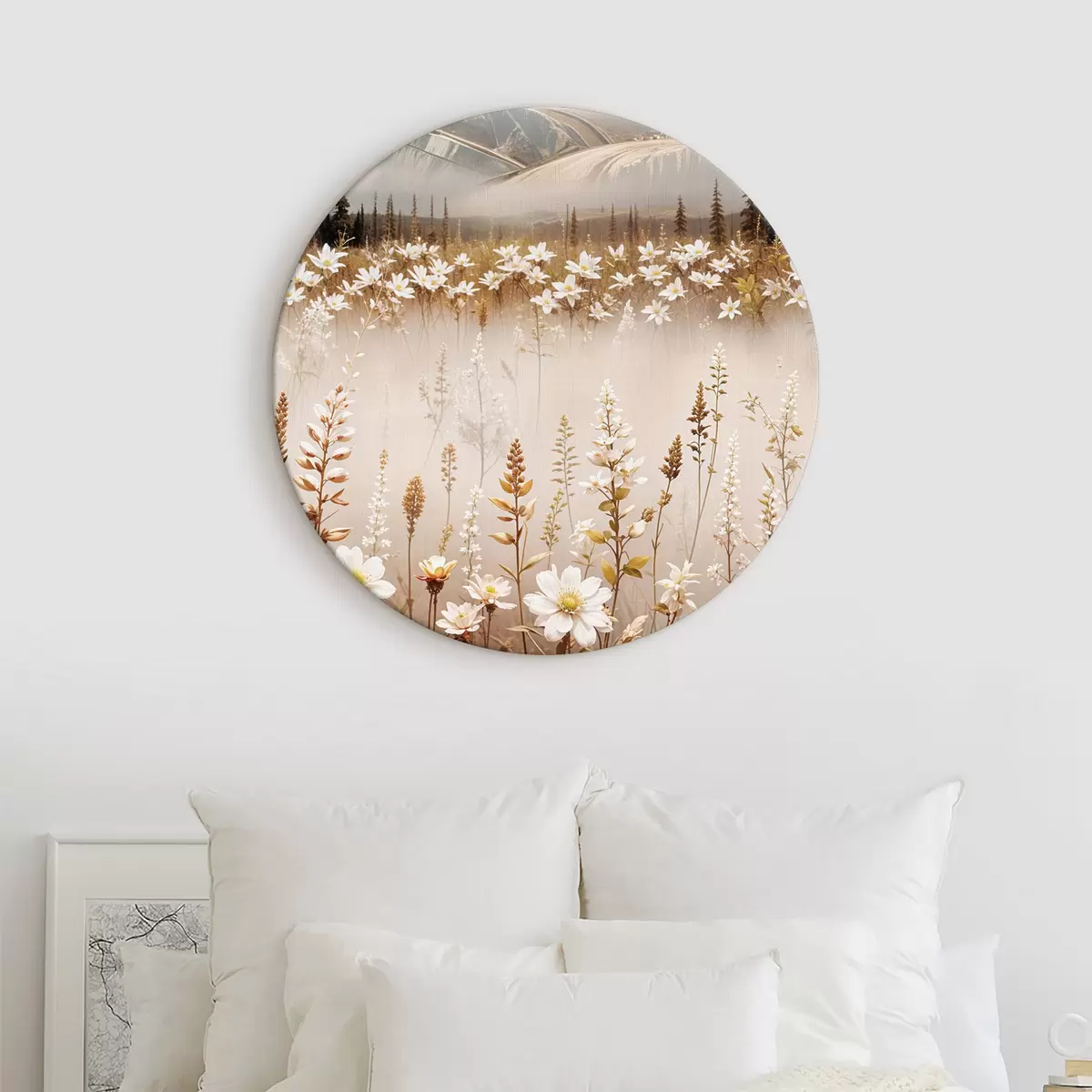 Obrázok Pole bielych a žltých kvetov s hornatou krajinou Nr r39503
