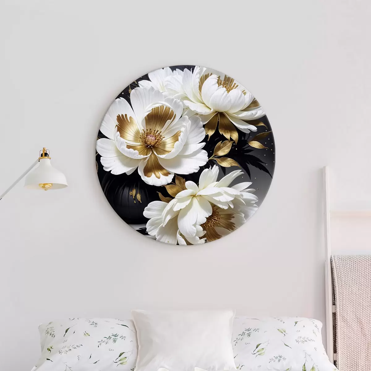 Obrázok Biele kvety pivonky v plnom kvete, s tmavým pozadím Nr r39504