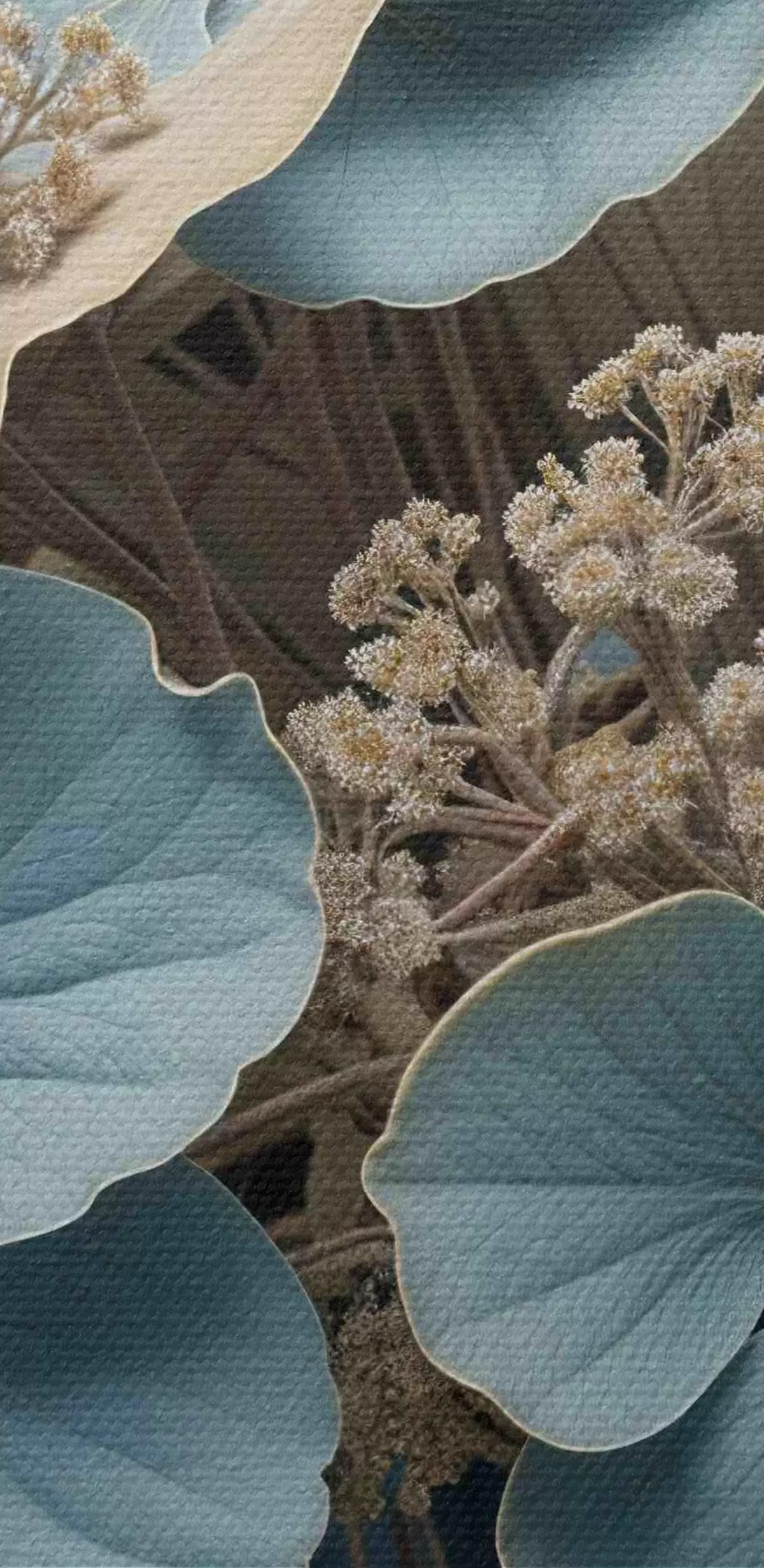 Obrázok Detailný záber na modré a biele kvety s jemnými, rozmazanými okvetnými lístkami na hnedom pozadí Nr r39517