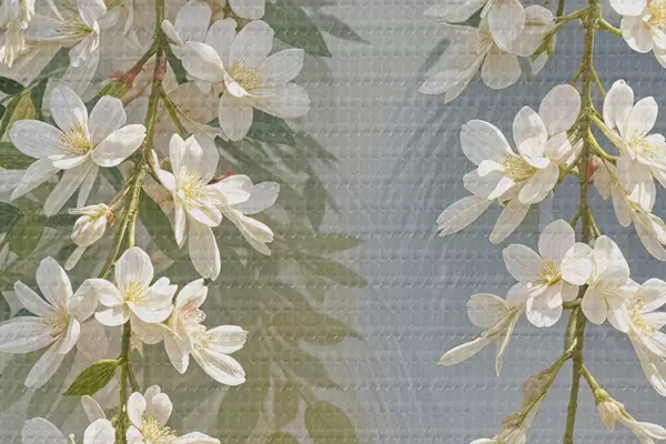 Obrázok Závesné biele kvety vistérie so zelenými listami na rozostrenom pozadí Nr r39530