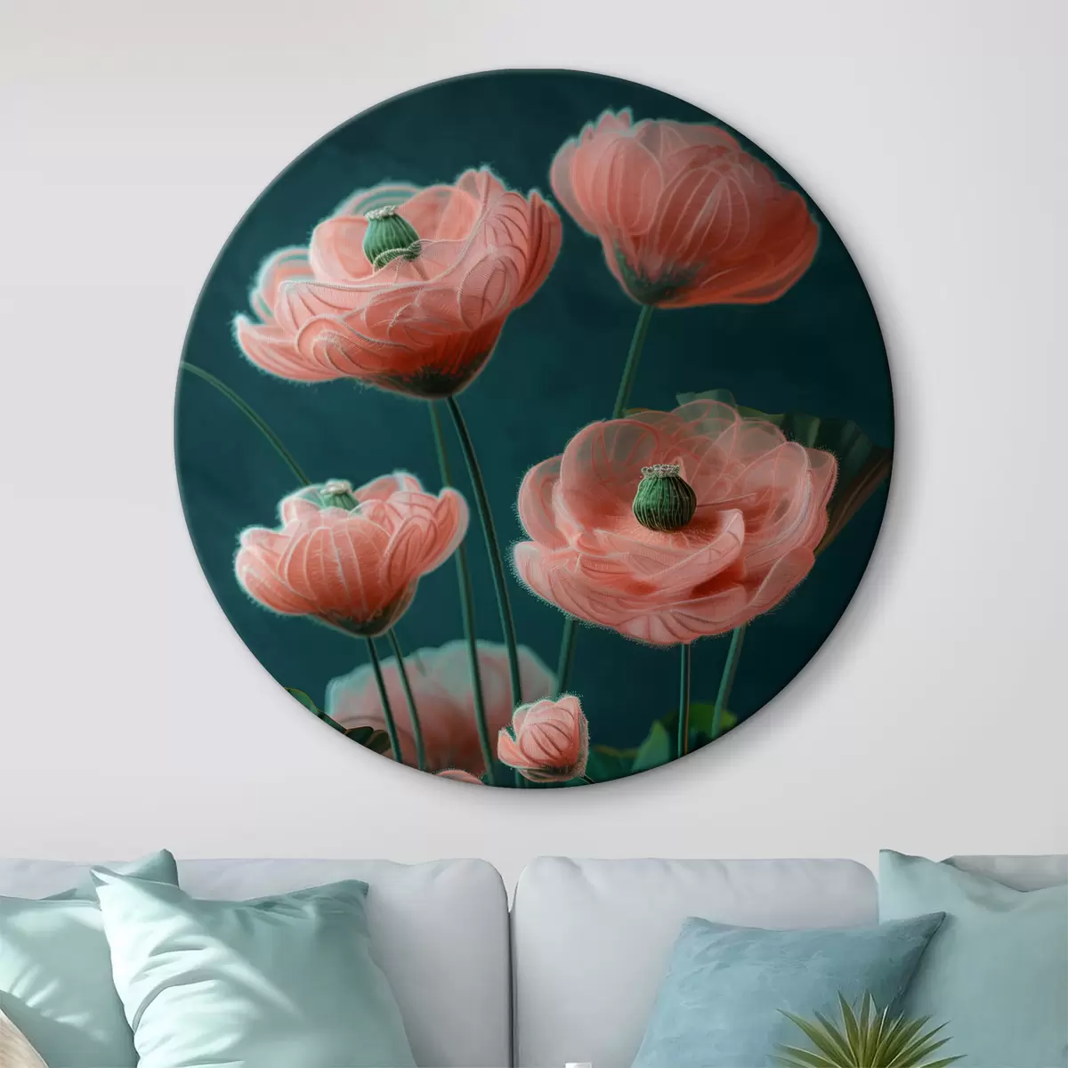 Obrázok Chlpaté obrie ružové kvety z vlny na zelenom podklade Nr r39651