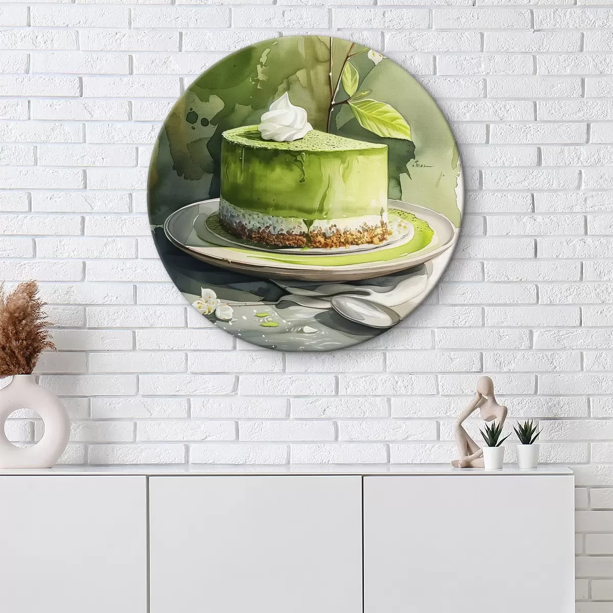 Obrázok Matcha cheesecake, akvarel food art, elegantný, jazmínový kvet, zelené farby Nr r39702