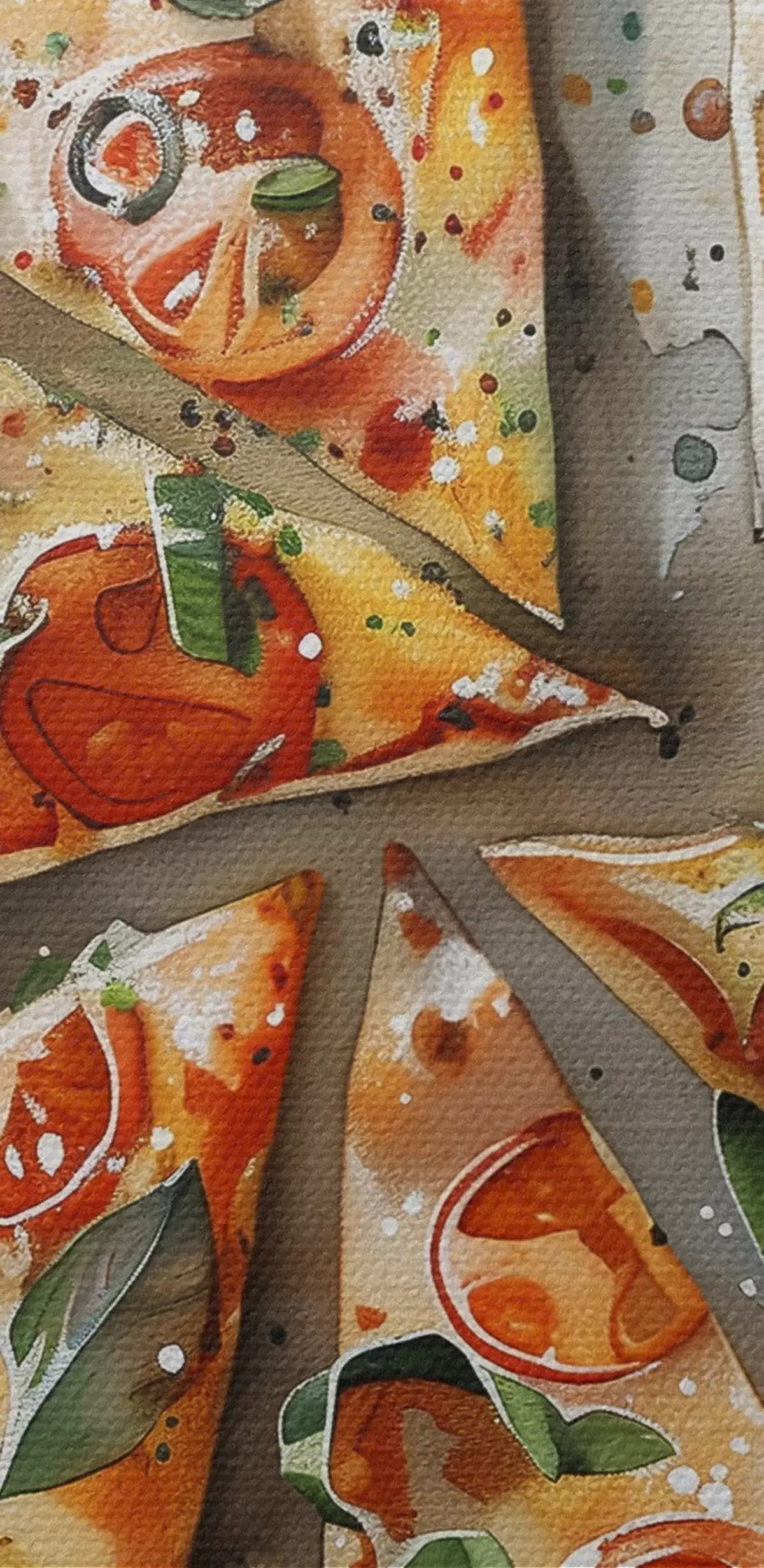 Obrázok Vynikajúca talianska pizza, akvarelové jedlo, margarita, paradajky Nr r39703