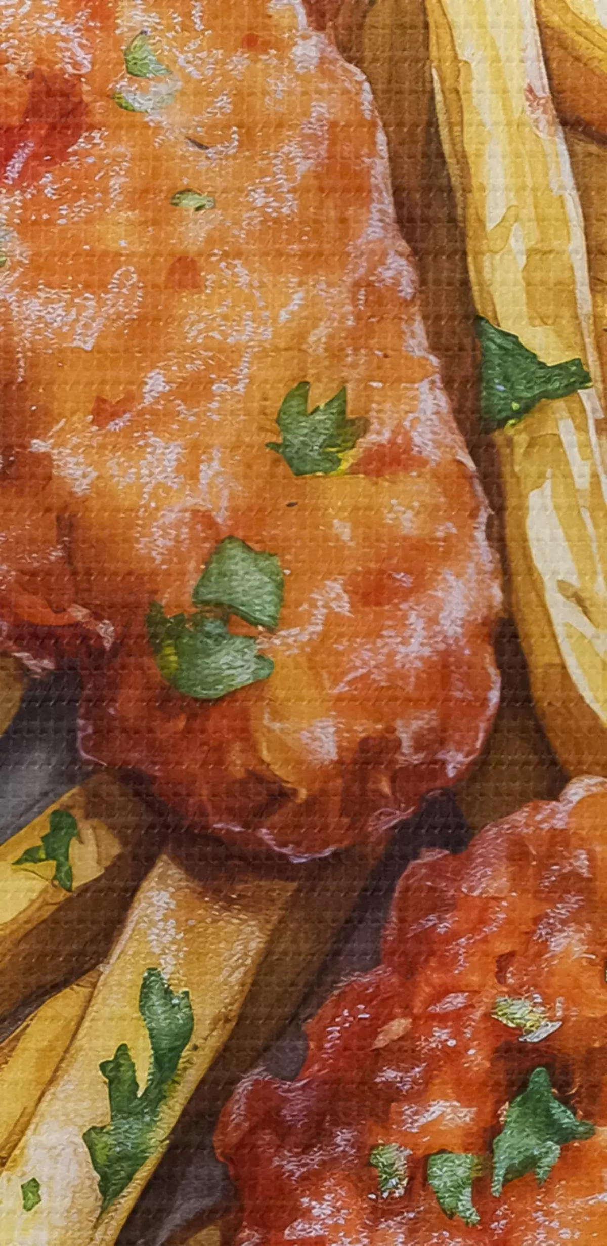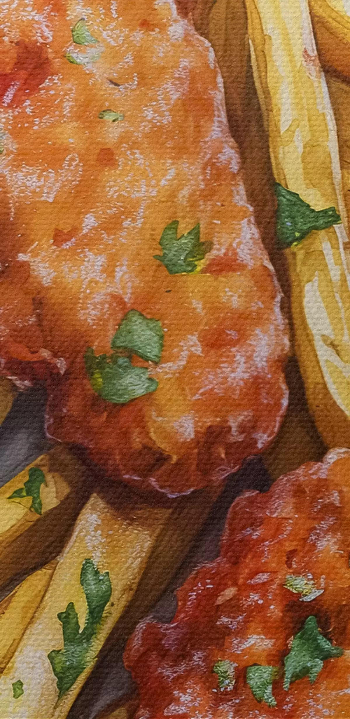 Obrázok Akvarel food art, hranolky s pečeným kuracím mäsom, chutné Nr r39708