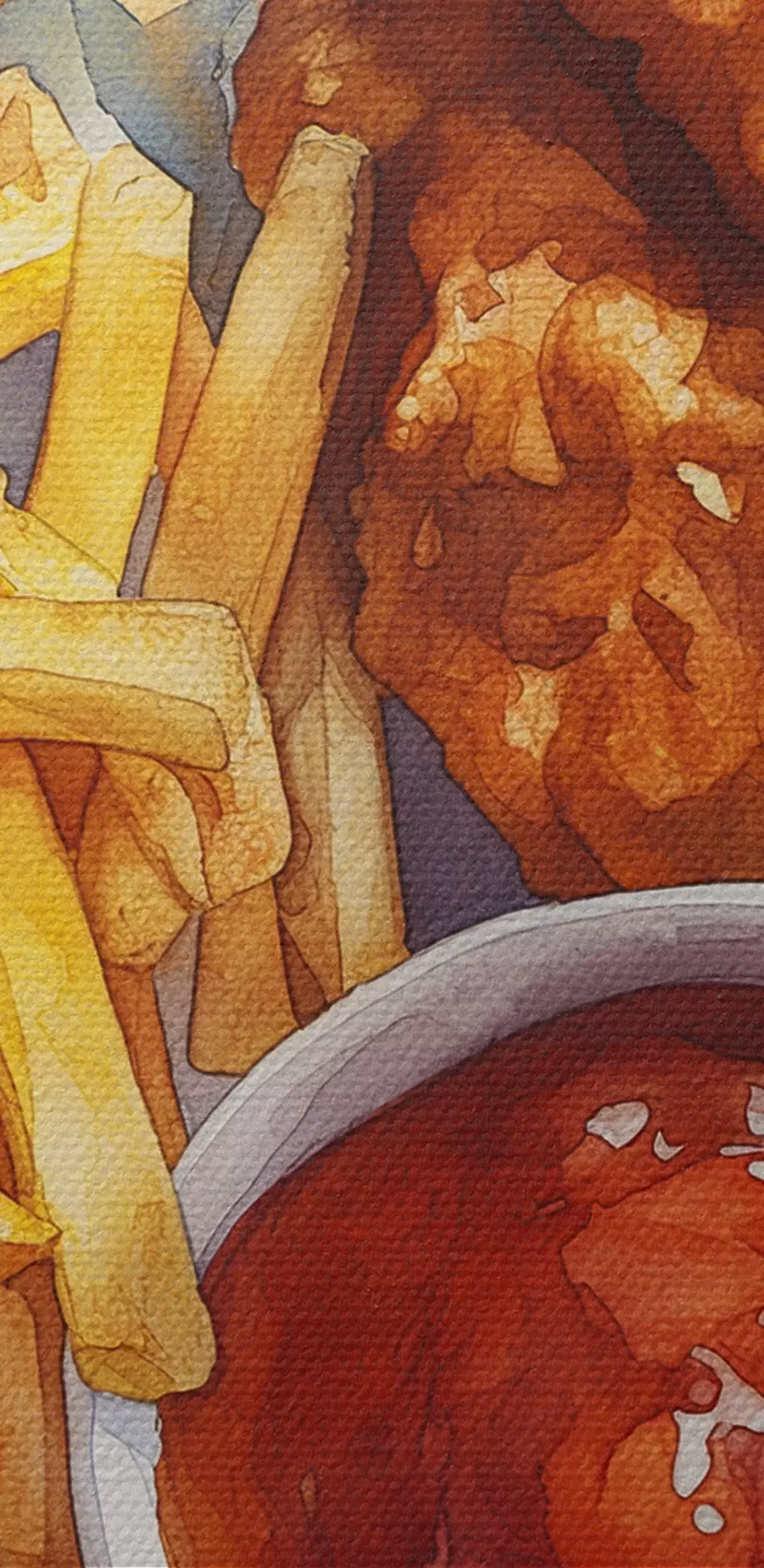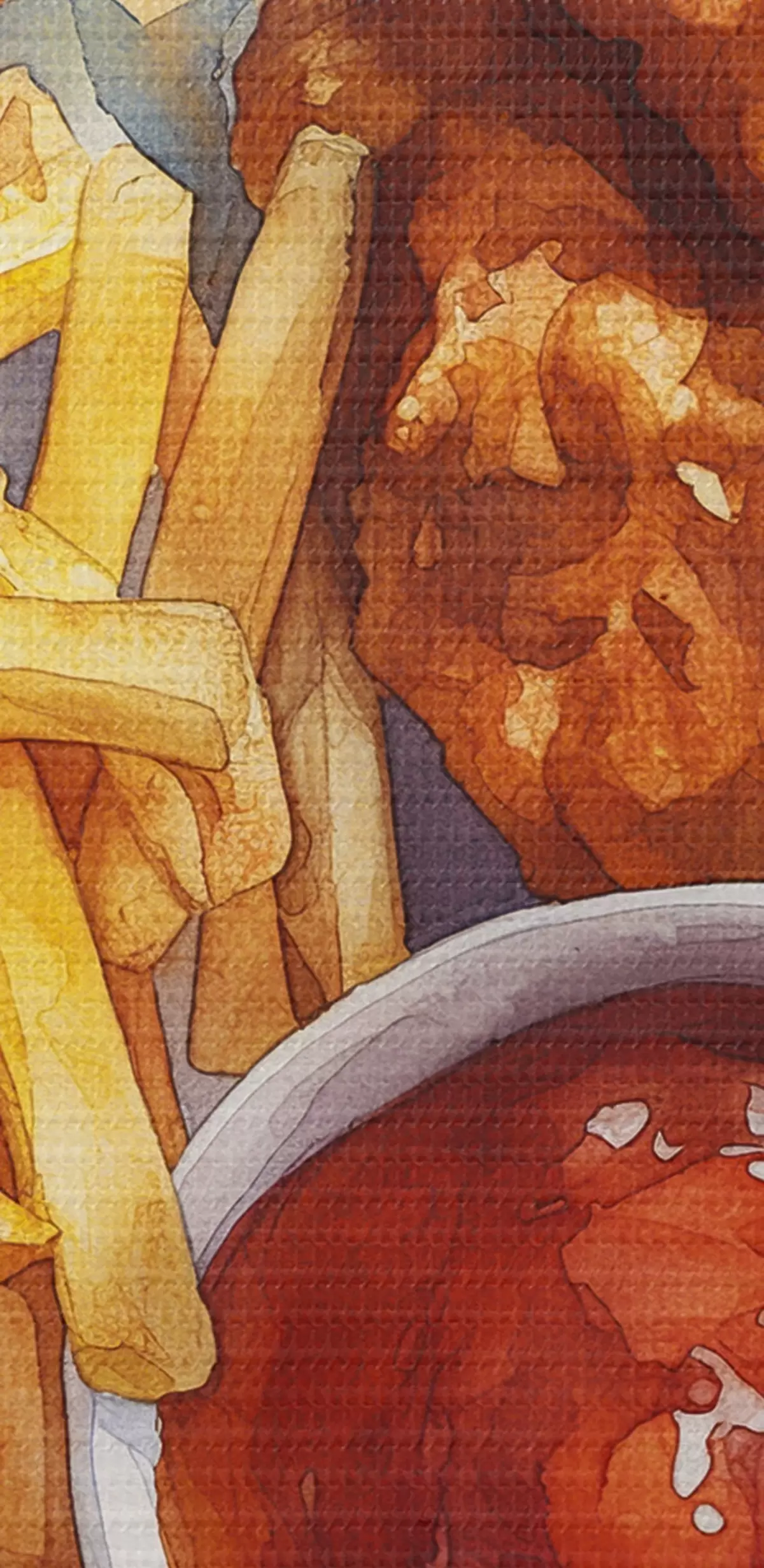 Obrázok Akvarelové pouličné jedlo, hranolky s pečeným kuracím mäsom, chutné Nr r39709