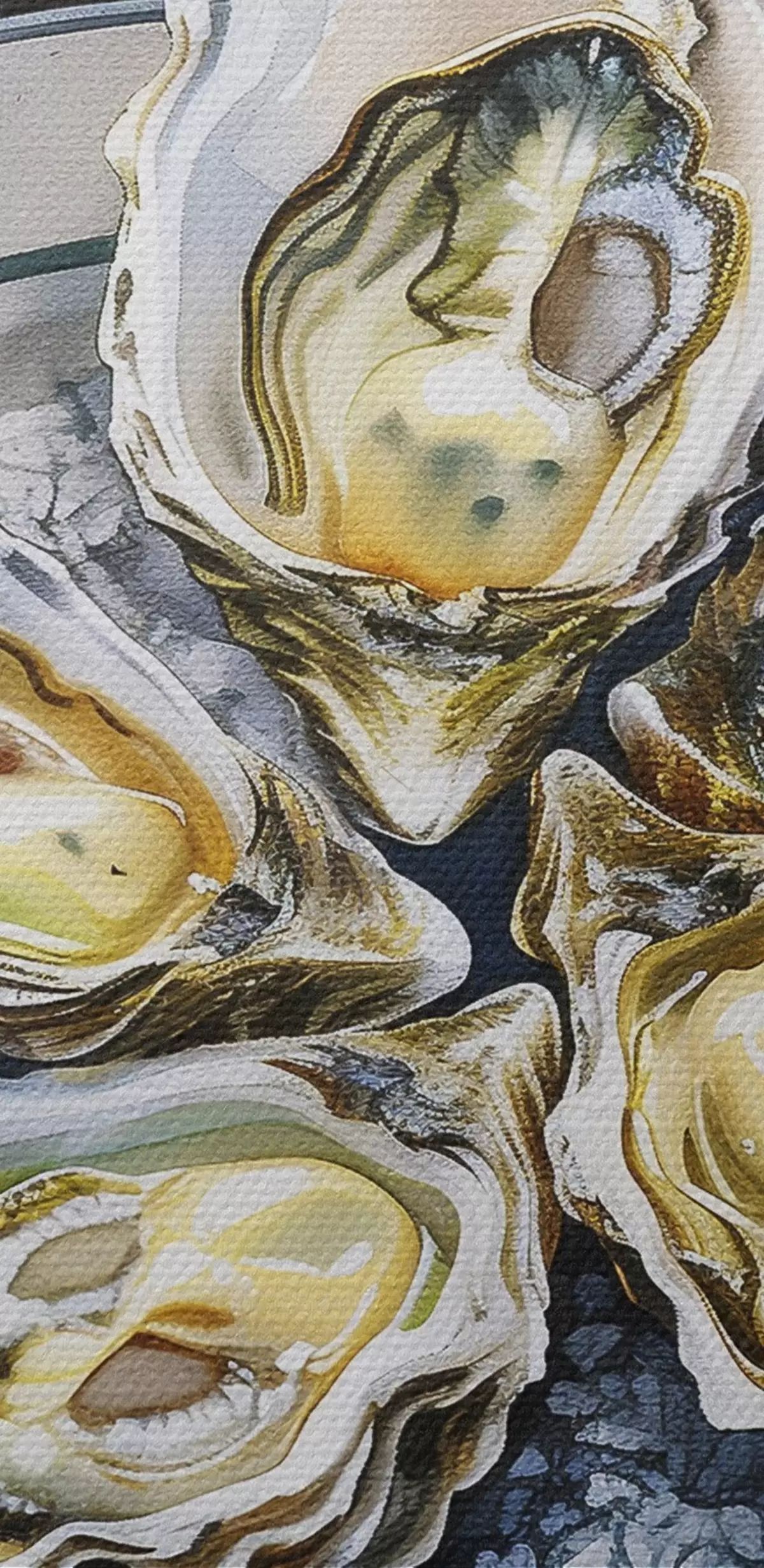 Obrázok Elegantné ustrice na tanieri, citróny a kvety, letné farby, stredomorské Nr r39710