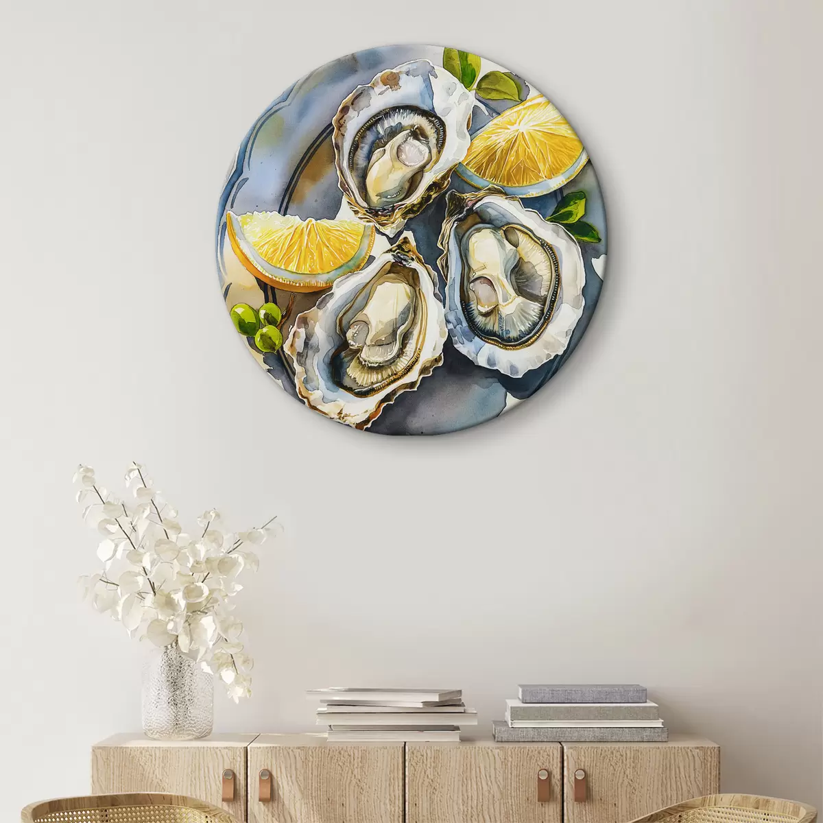 Obrázok Elegantné ustrice na tanieri, akvarel, citróny, prírodné farby, stredomorské Nr r39711