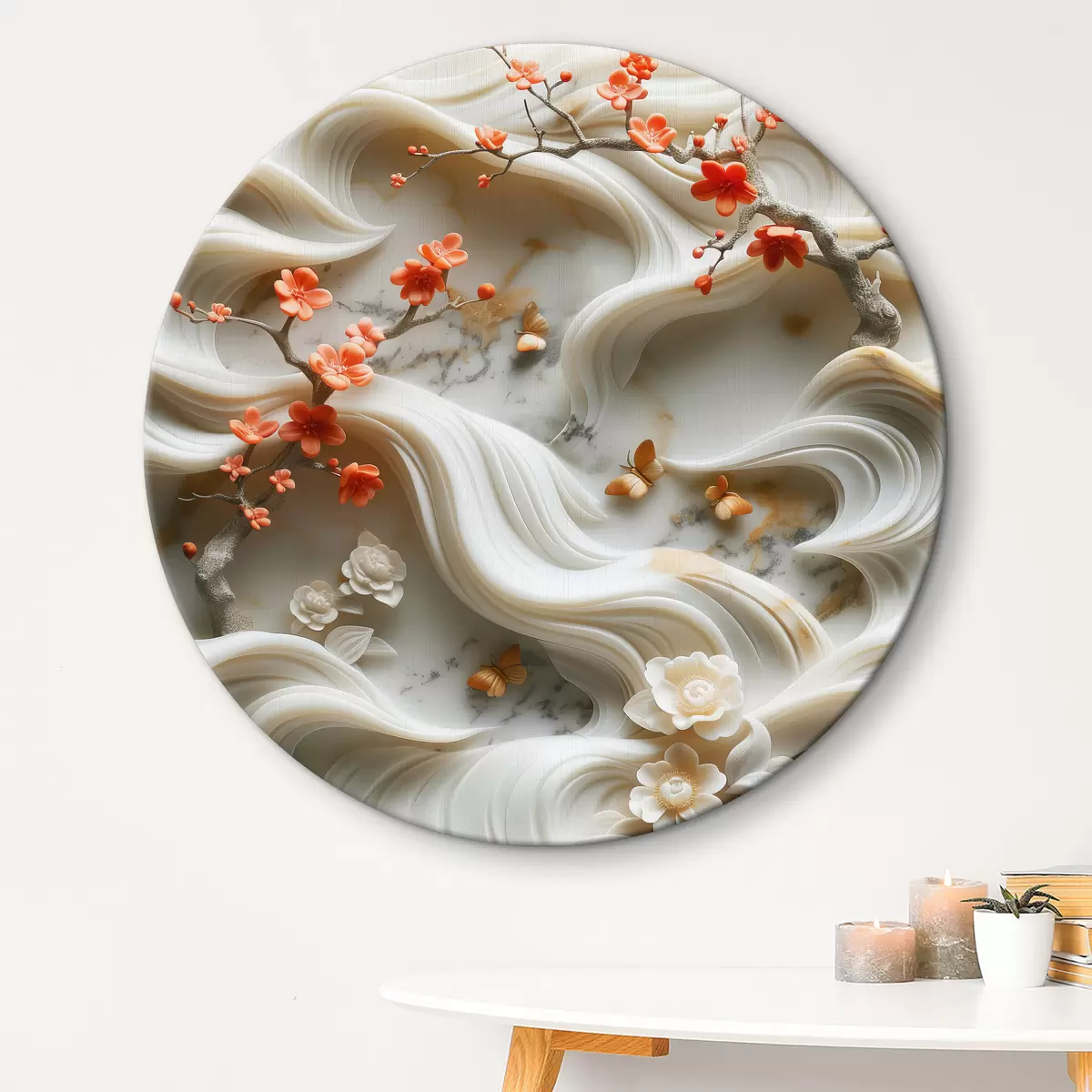 Obrázok Nebeská 3D záhradná scéna vytesaná z bieleho mramoru s tečúcou flórou a faunou Nr r39727