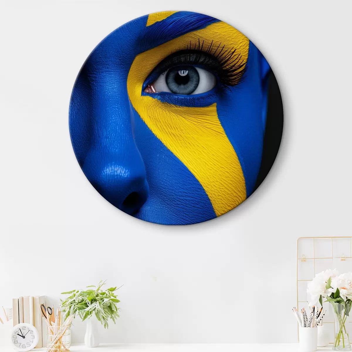 Obrázok Žiarivo žltý a modrý minimalistický portrét krásneho dievčaťa Nr r39758