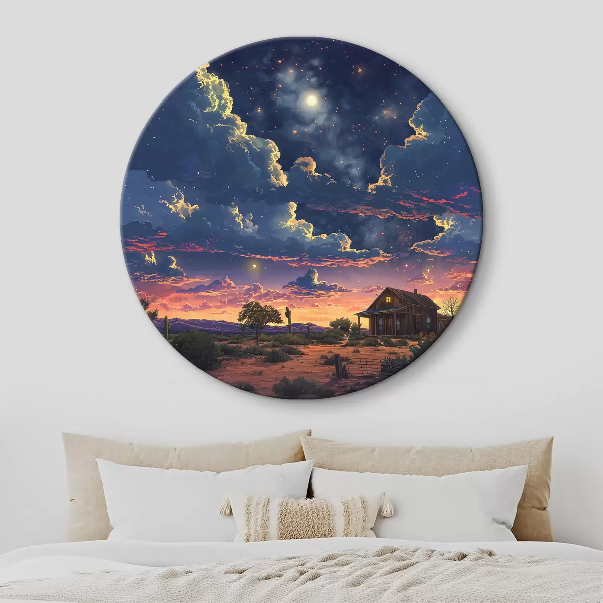 Obrázok Farma v púšti, hviezdna obloha, farby západu slnka, prírodná krajina Nr r39770
