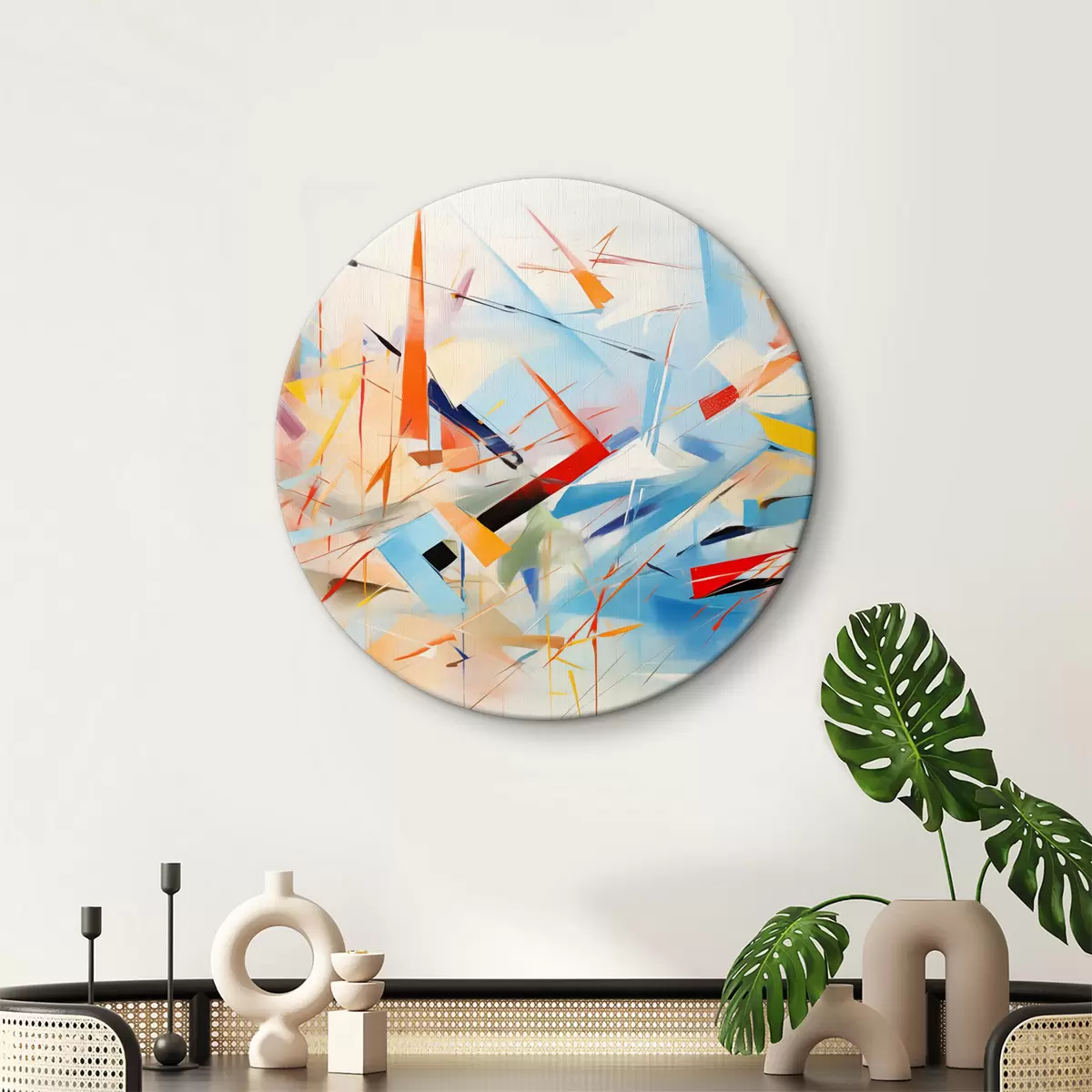 Obrázok Chaotická dynamická geometrická abstrakcia, modrá, červená, žltá Nr r39813