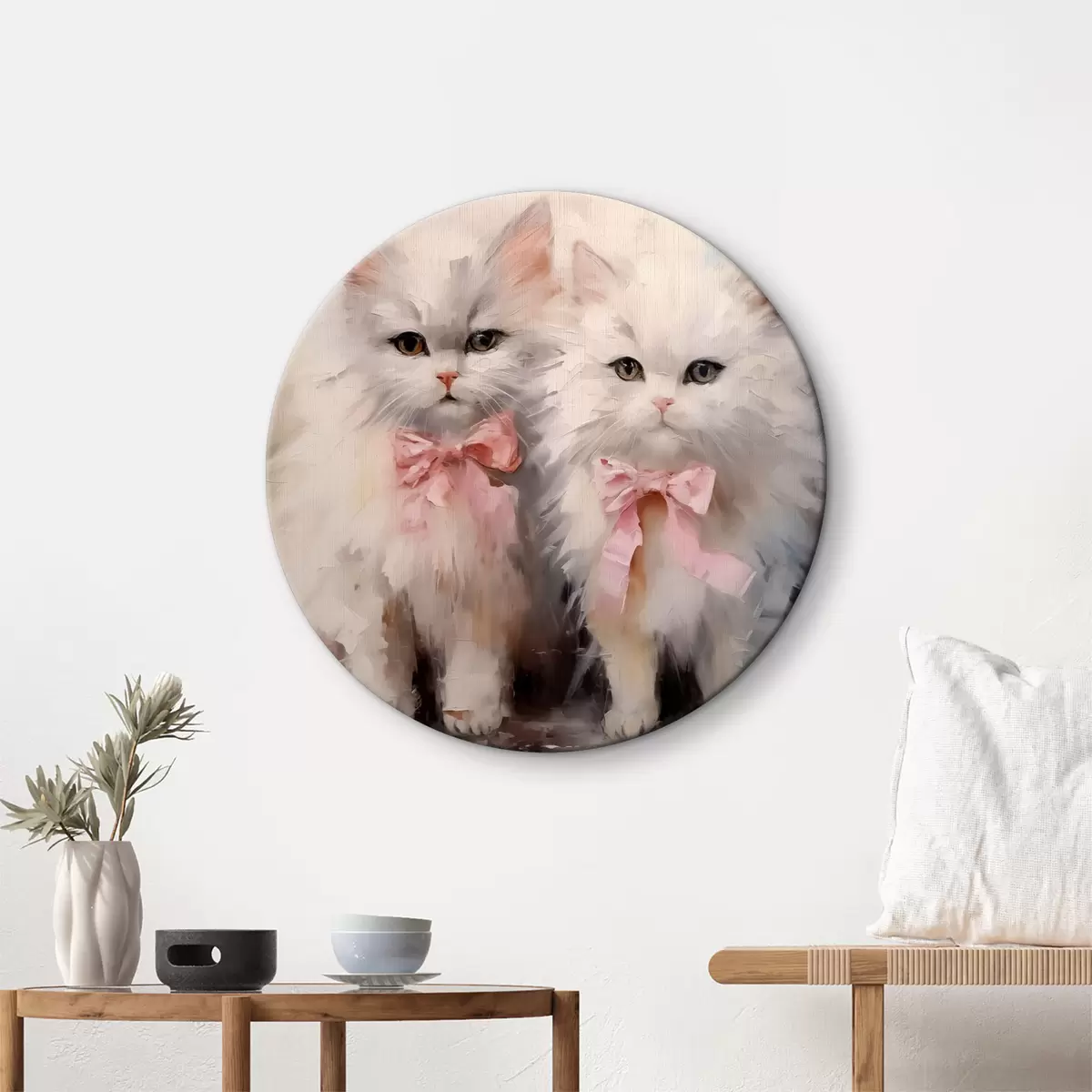 Obrázok Olejomaľba biele mačky s ružovými mašľami Nr r39826
