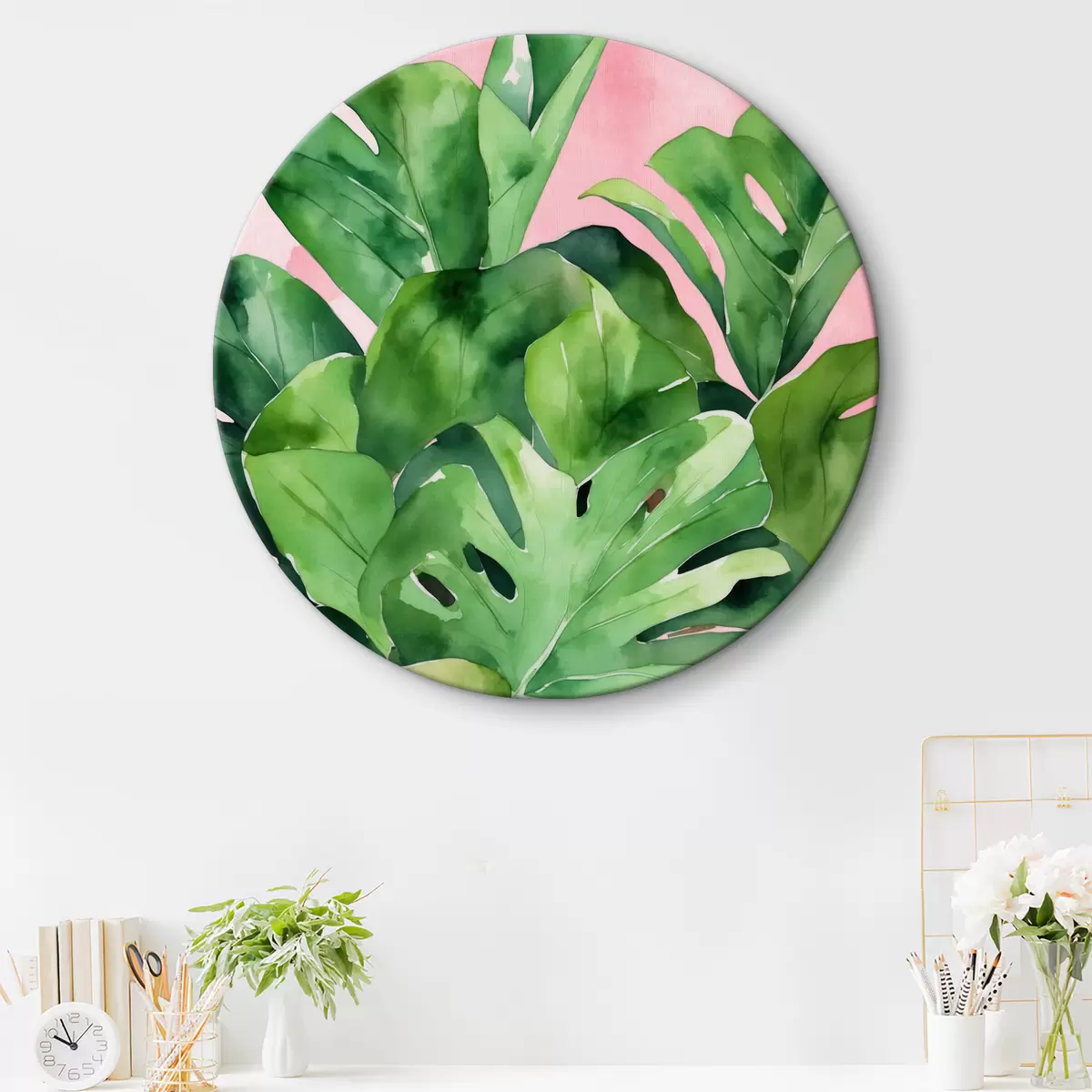 Obrázok Tropické listy na ružovom pozadí Nr r39870