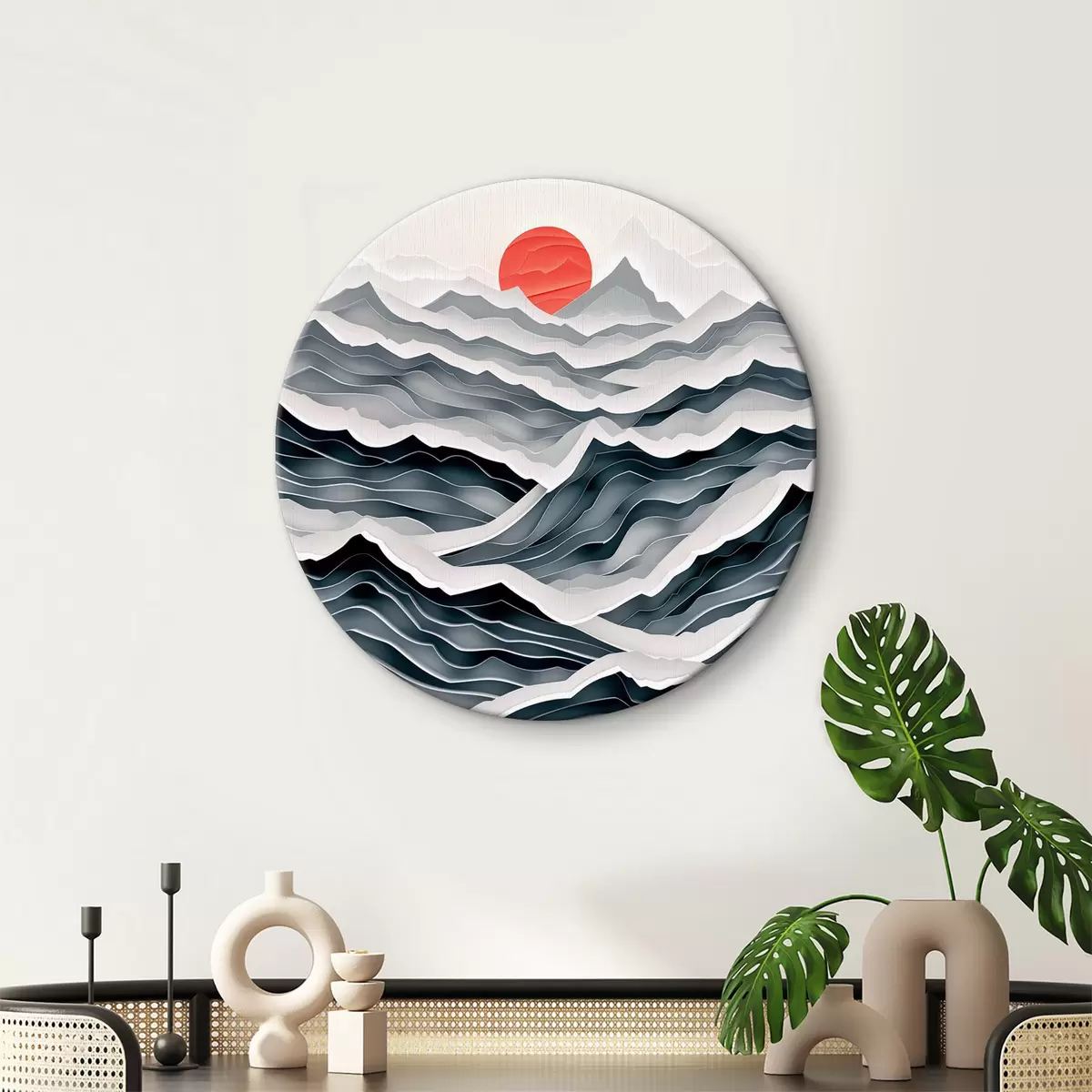 Obrázok Abstraktné vlny s červeným slnkom Nr r39895