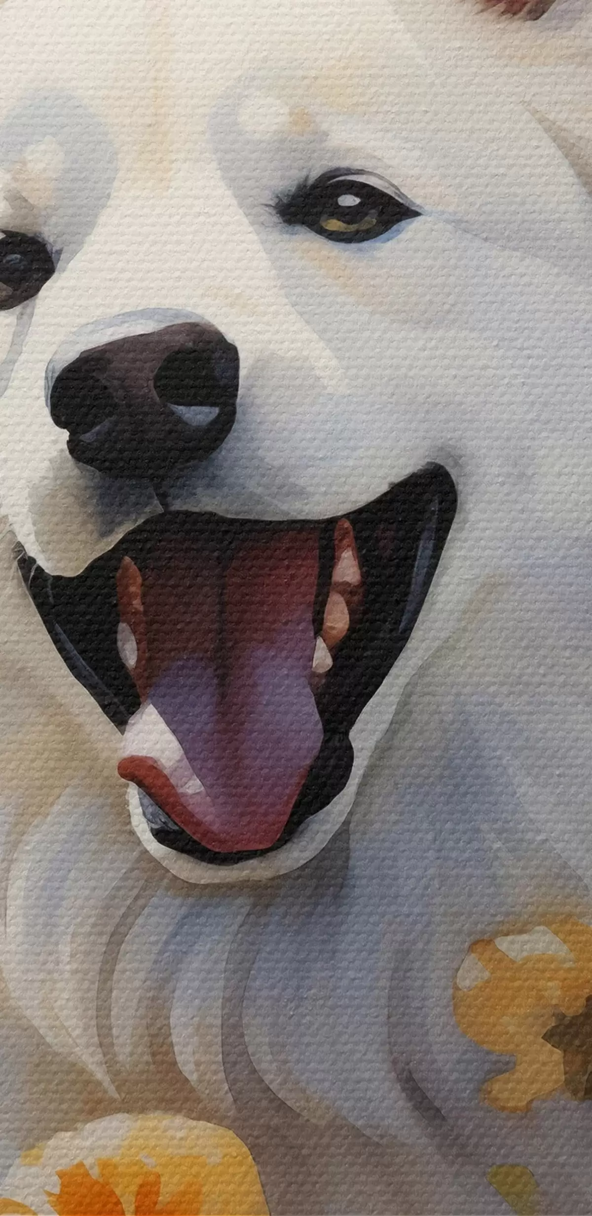 Obrázok Biely pes sedí v kvetoch, motýle lietajú akvarelom Nr r39936