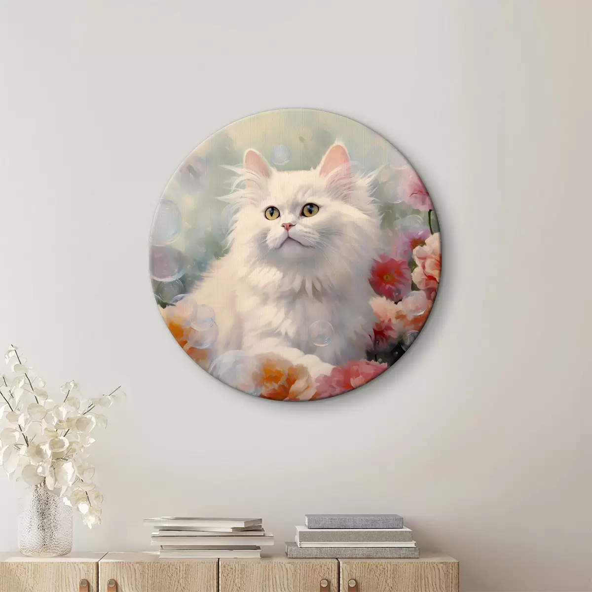 Obrázok Biela nadýchaná mačka v záhrade kvetov a mydlových bublín akvarel Nr r39937