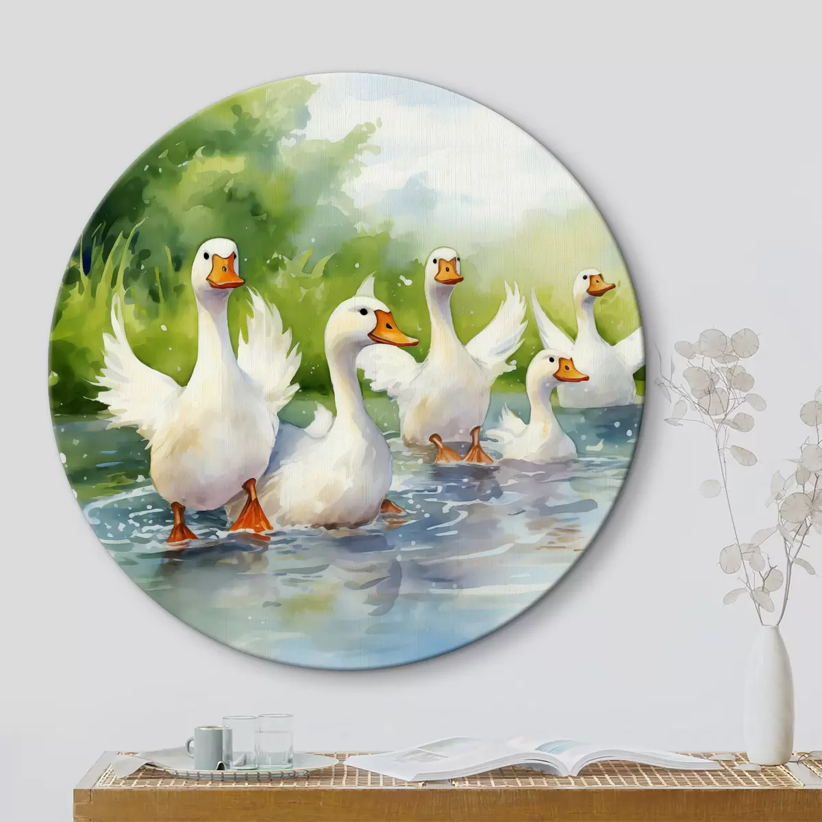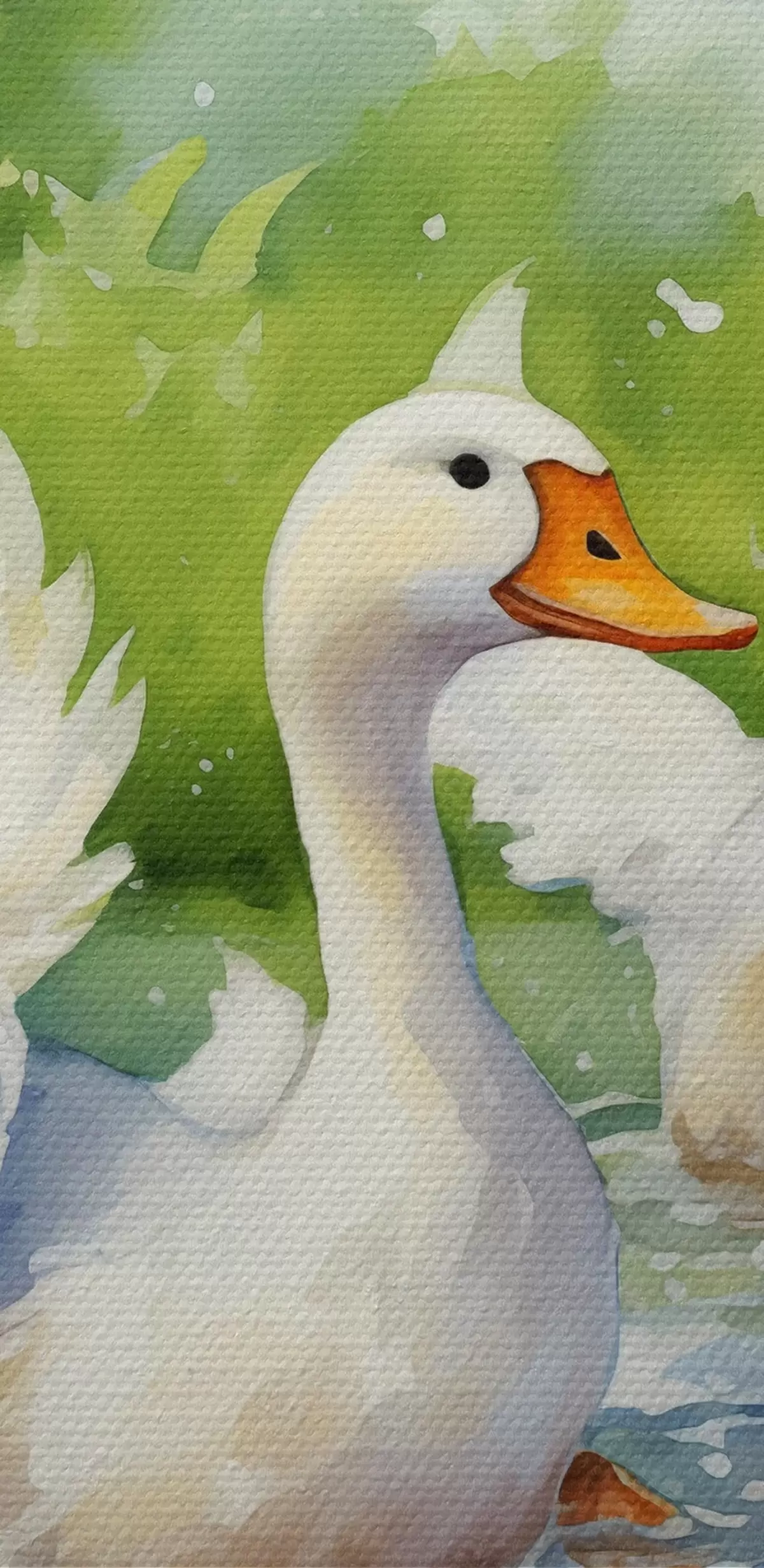 Obrázok Biele husi kúpajúce sa v jazierku akvarelom Nr r39939