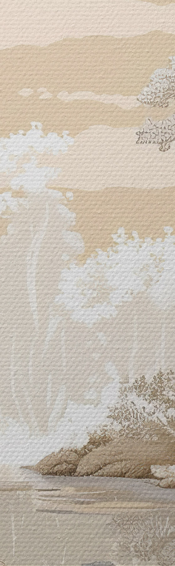 Obrázok Krásna lesná krajina, jemné pastelové farby, béžová a biela Nr r39978