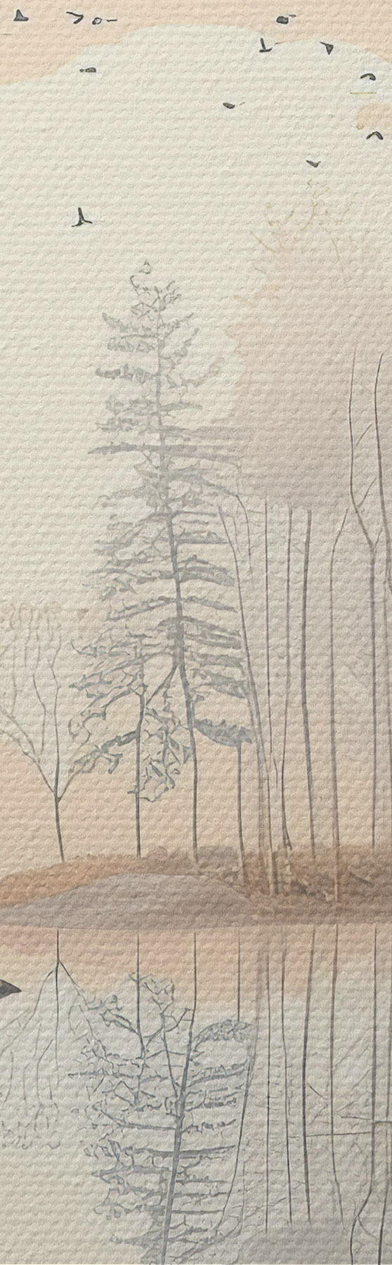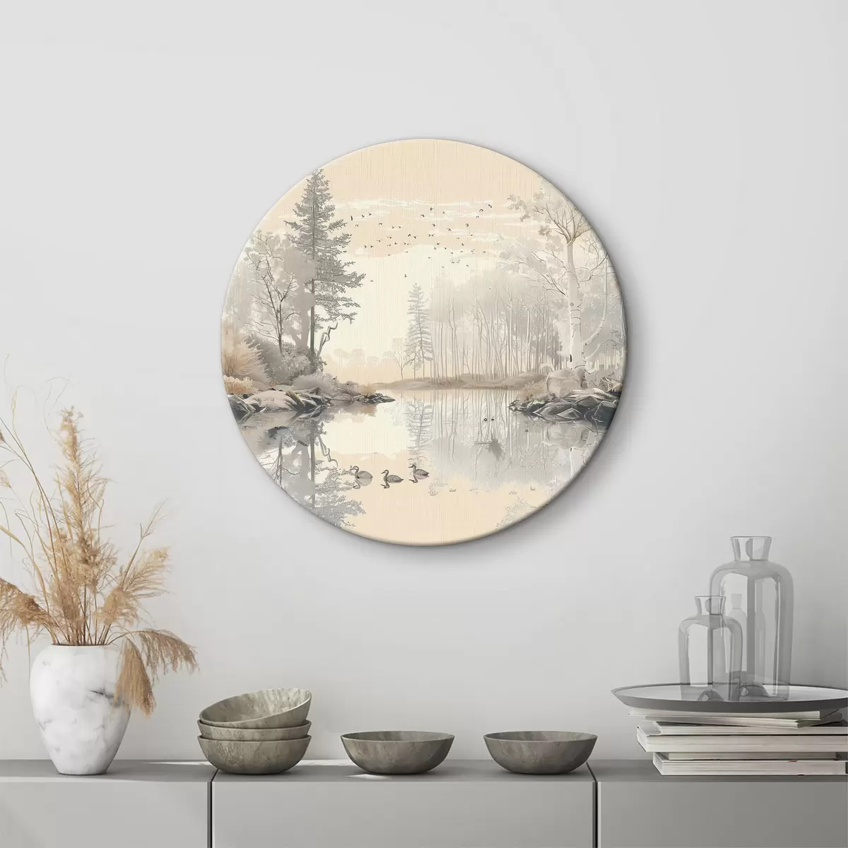 Obrázok Krásna prírodná krajina, jazierko a stromy, divoká zver, jemné pastelové farby Nr r39980