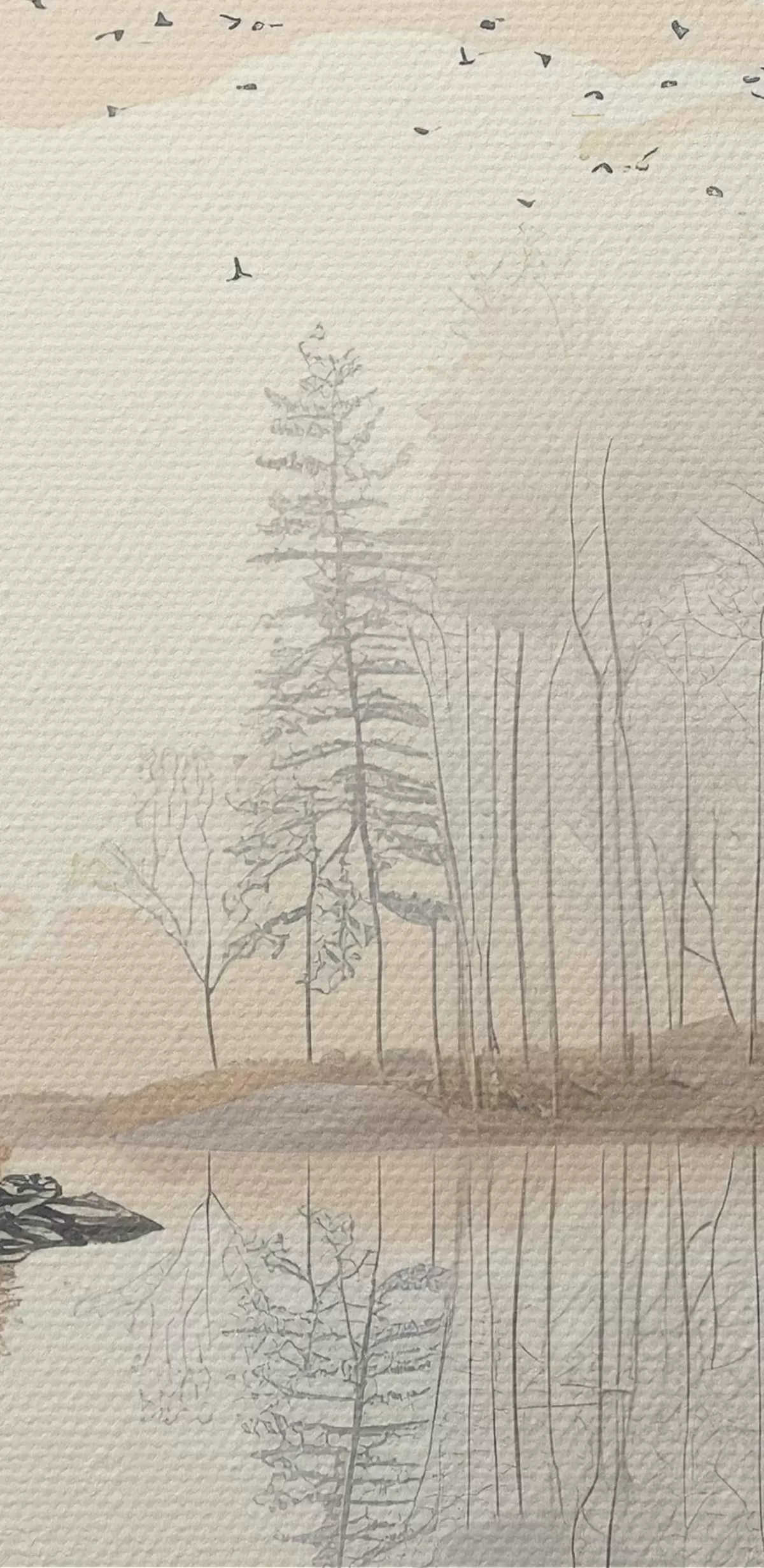 Obrázok Krásna prírodná krajina, jazierko a stromy, divoká zver, jemné pastelové farby Nr r39980