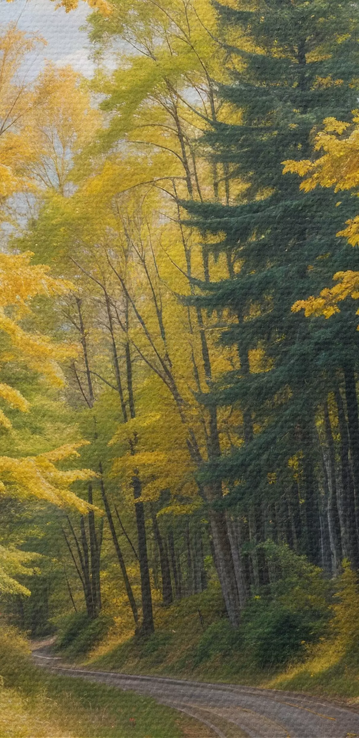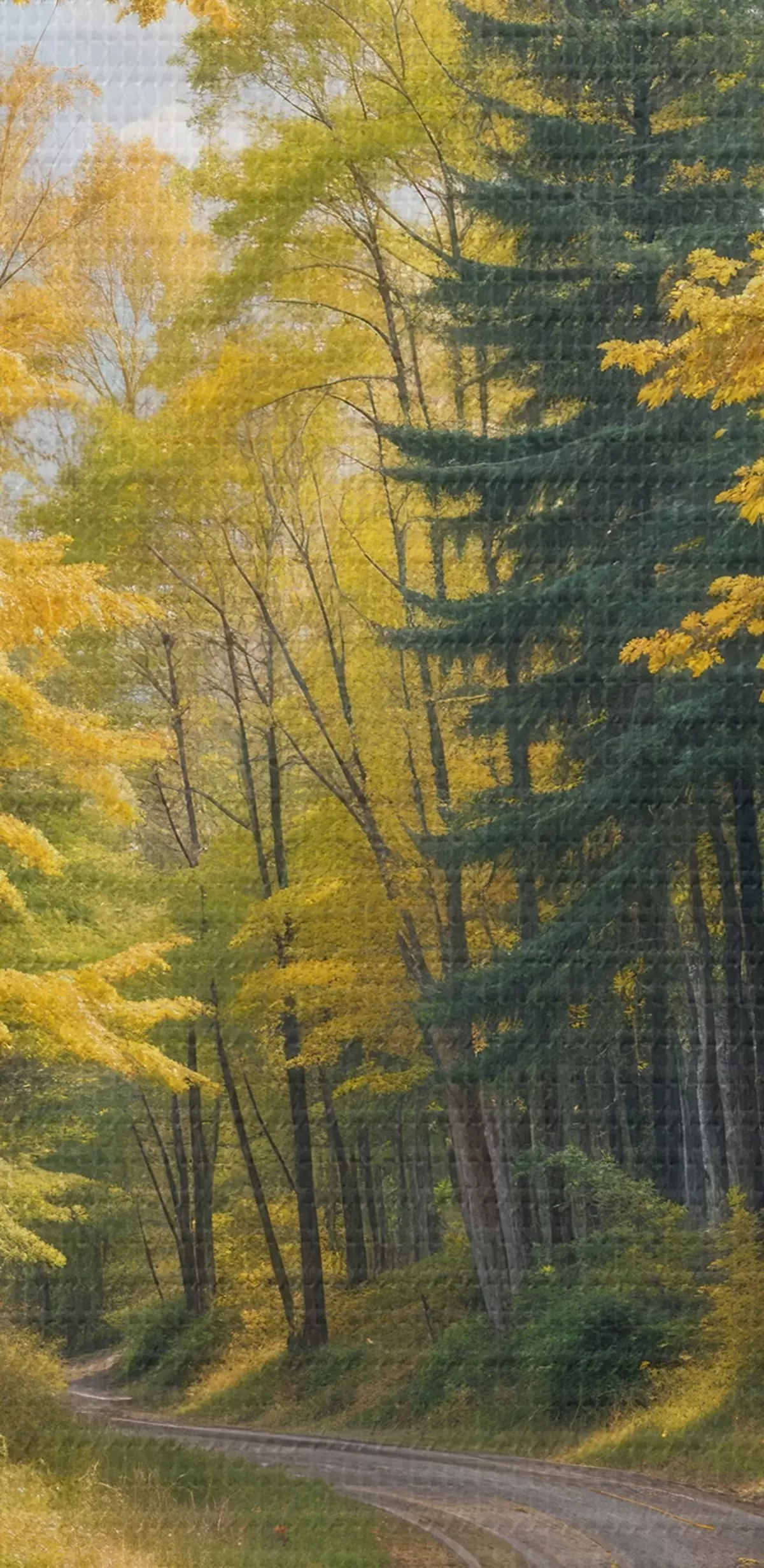 Obrázok Poľná cesta vinúca sa lesom na jeseň s vysokými stromami na oboch stranách Nr r40031