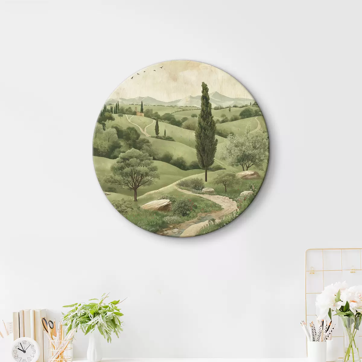 Obrázok Toskánska krajina, vintage štýl, pastelové zelené farby, kopce a stromy Nr r40075