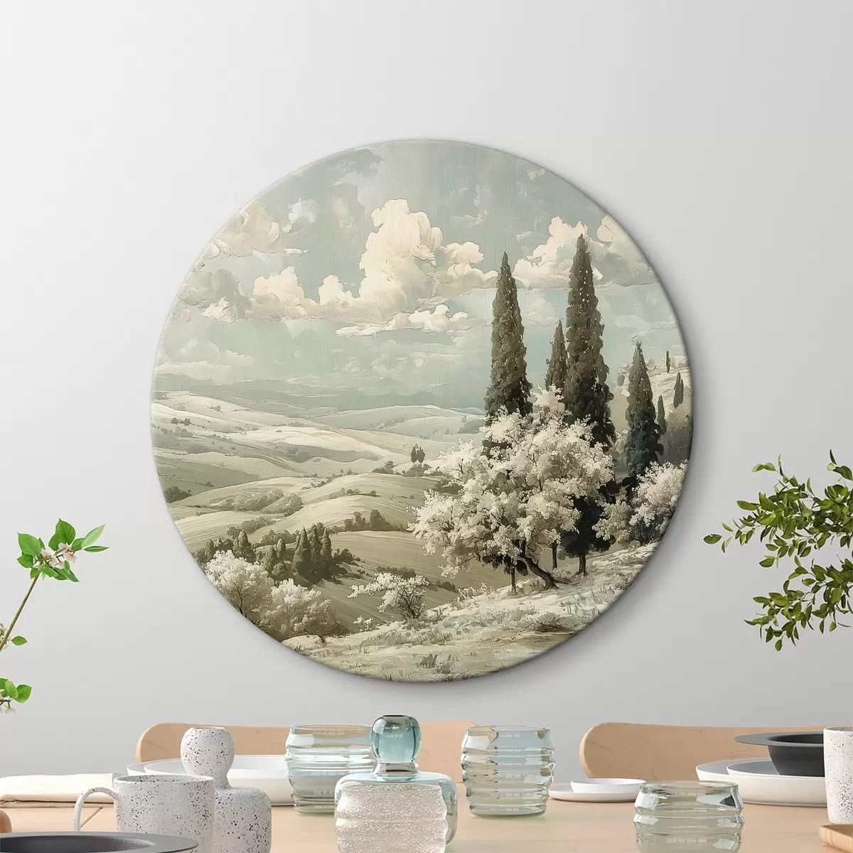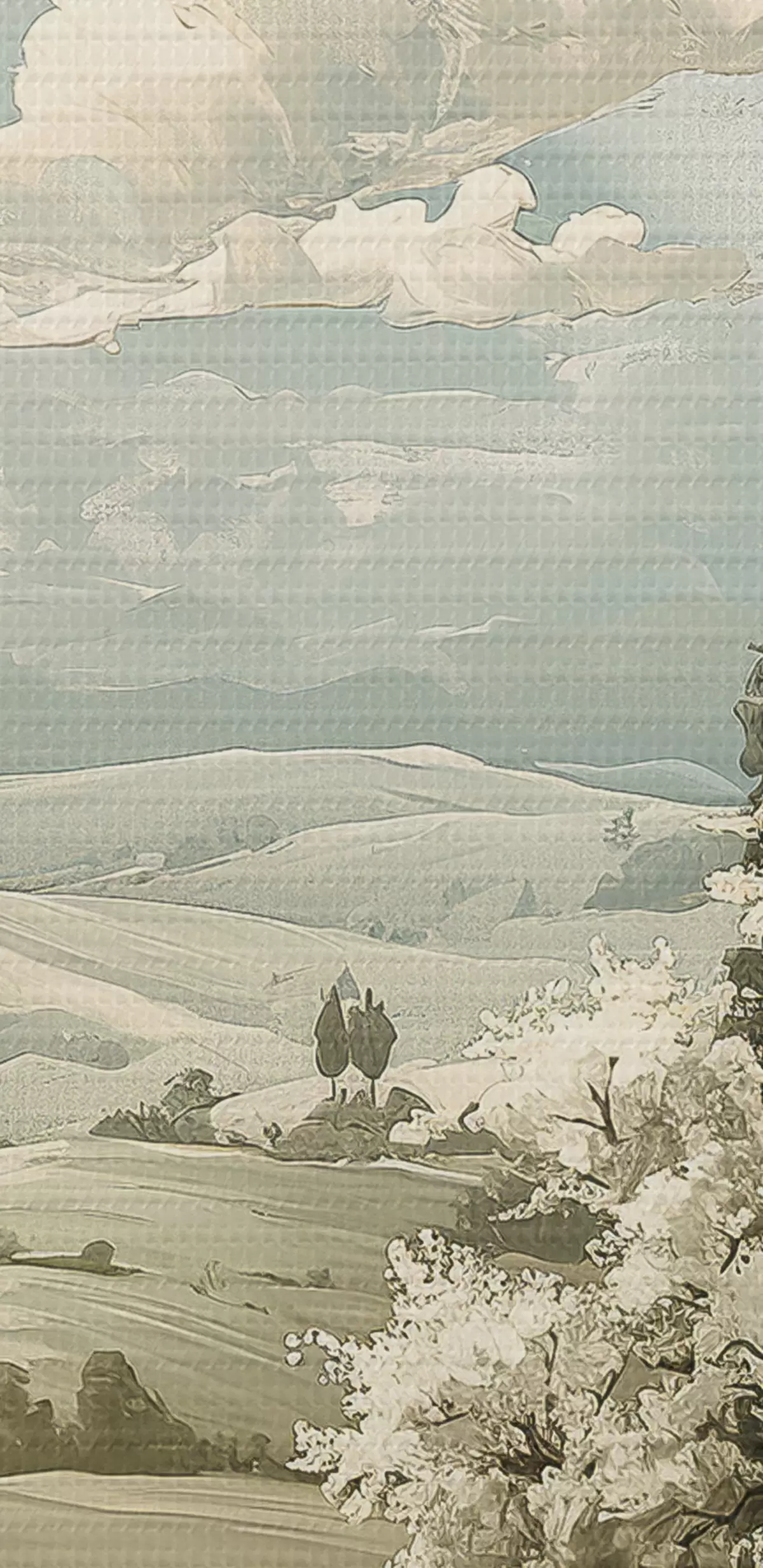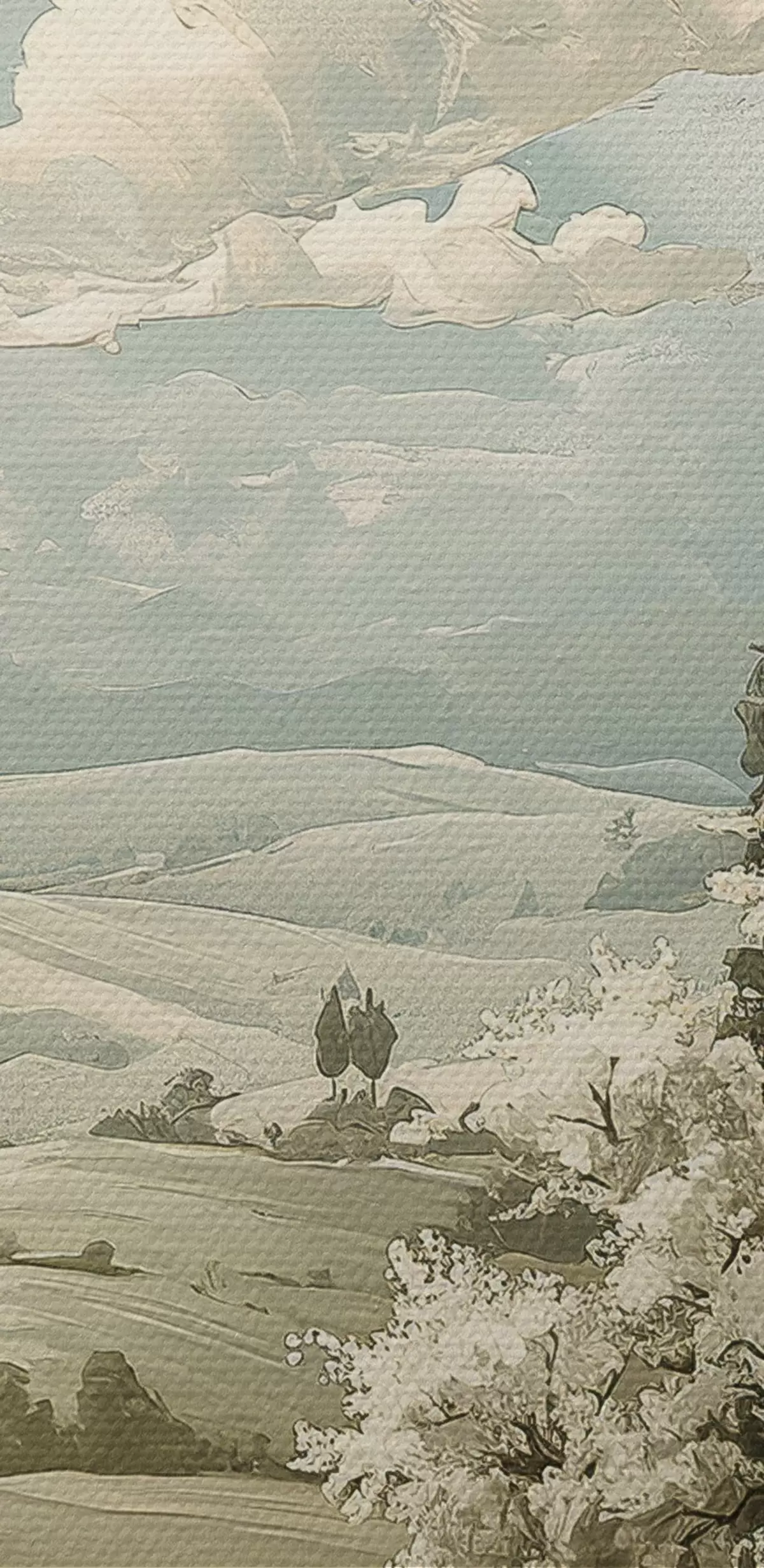Obrázok Letná krajina, vintage štýl, pastelové farby, akrylová kresba, hrad Nr r40084