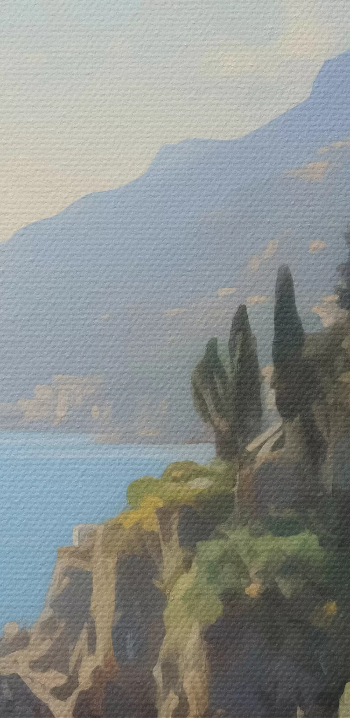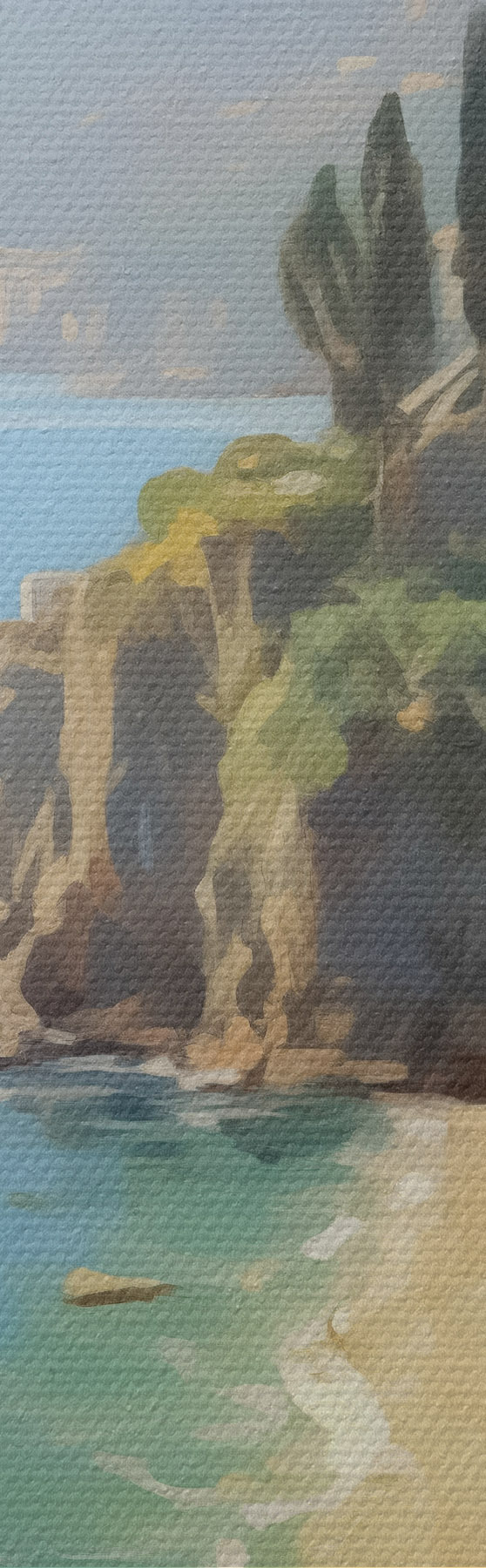 Obrázok Pohľad na morský záliv, hory v Taliansku z hotelovej imitácie olejomaľby Nr r40088
