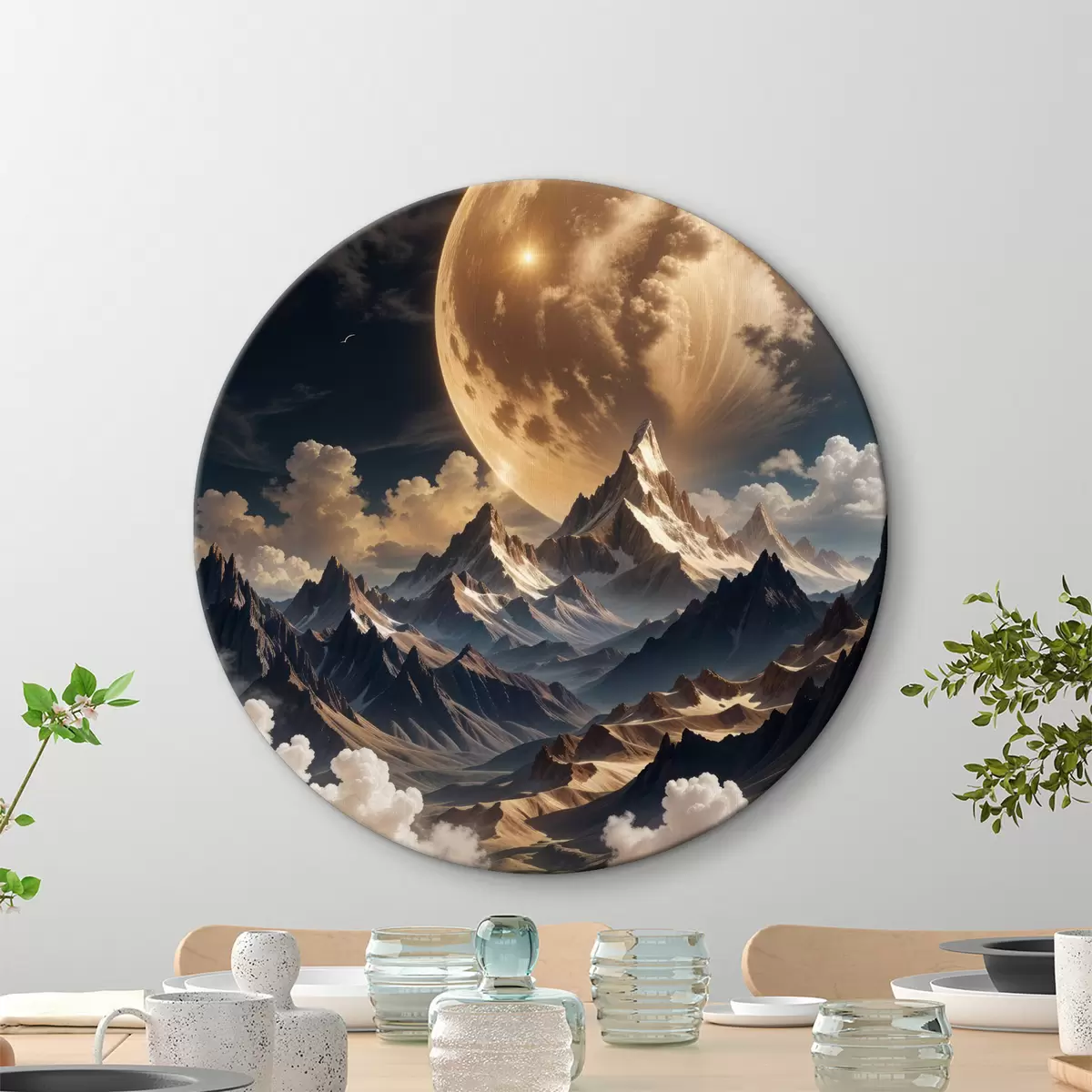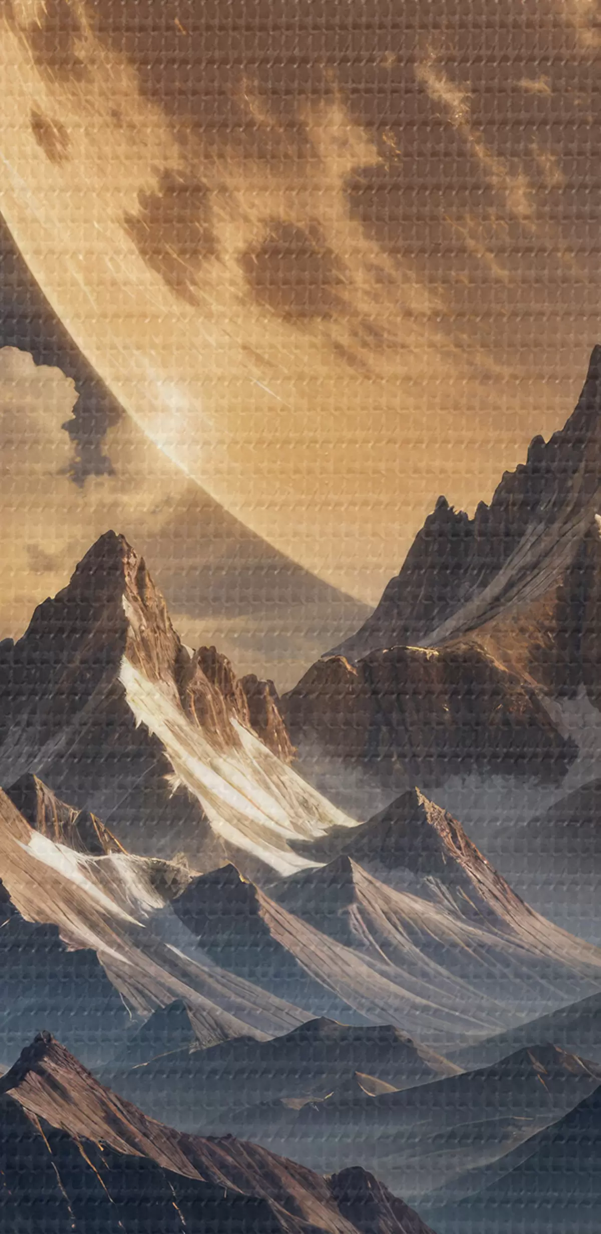 Obrázok Neskutočná krajina so zasneženými horami za mohutného splnu s jemnými mrakmi Nr r40147