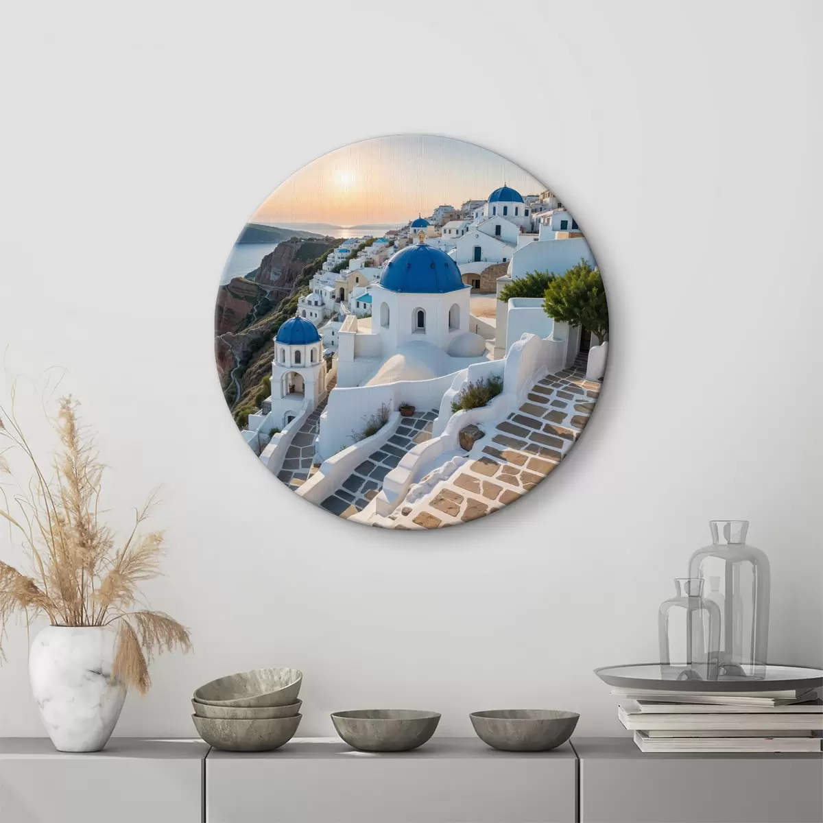 Obrázok Ostrov Santorini, Grécko. Mesto je postavené na svahu s výhľadom na Egejské more Nr r40160