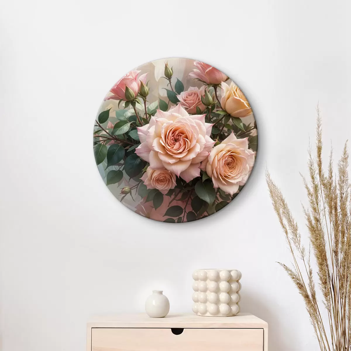 Obrázok Kytica krásnych ružových ruží so zelenými listami na jemnom rozostrenom pozadí Nr r40168