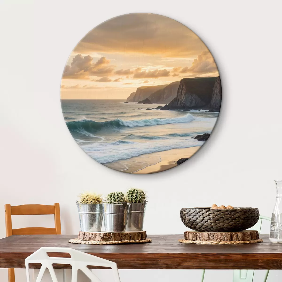 Obrázok Malebná pobrežná krajina s dramatickými útesmi, burácajúcimi vlnami a farebnou oblohou pri západe slnka Nr r40176