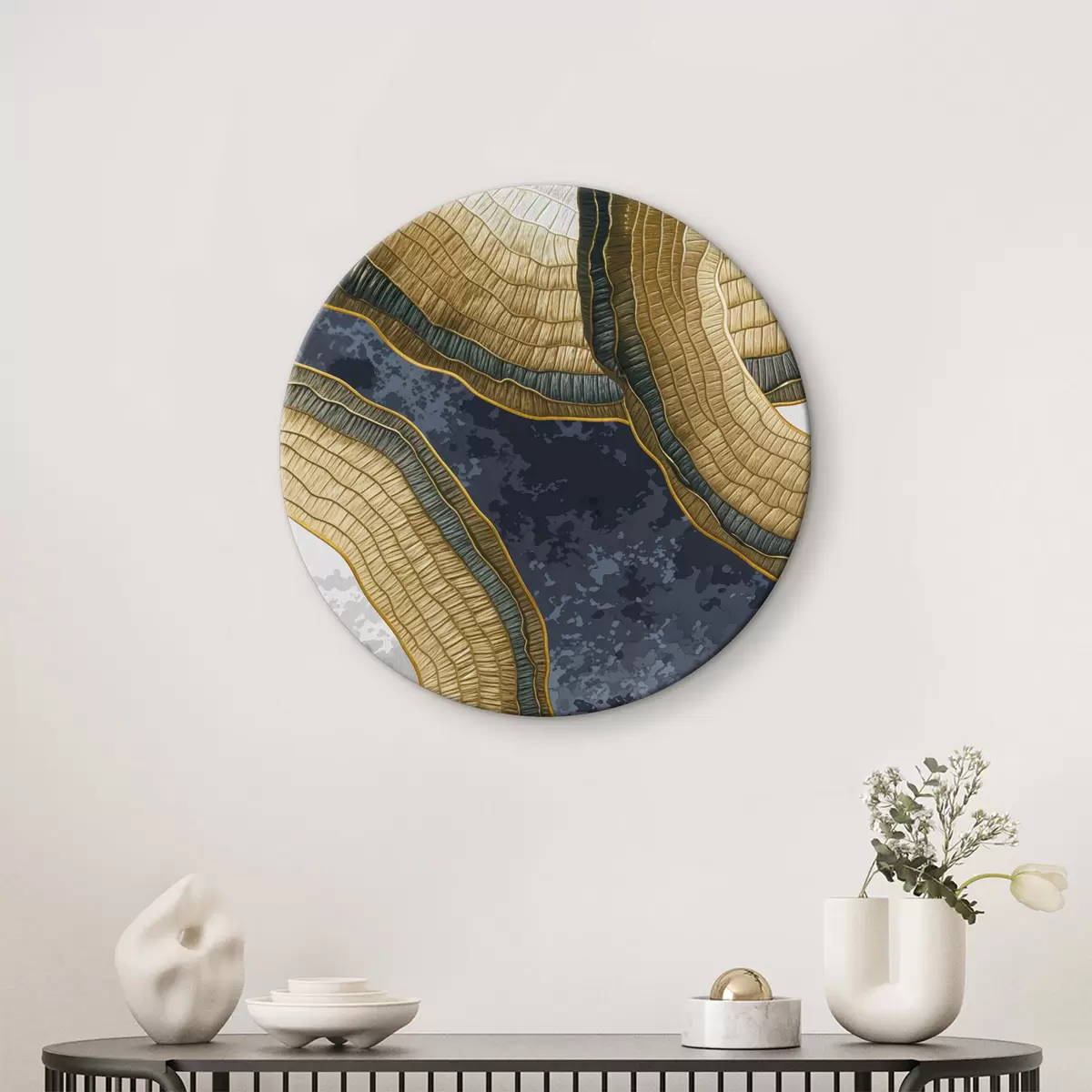 Obrázok Abstraktná krajina s vrstvami štruktúrovaných žltých odtieňov, modrých a šedých tvarov Nr r40180